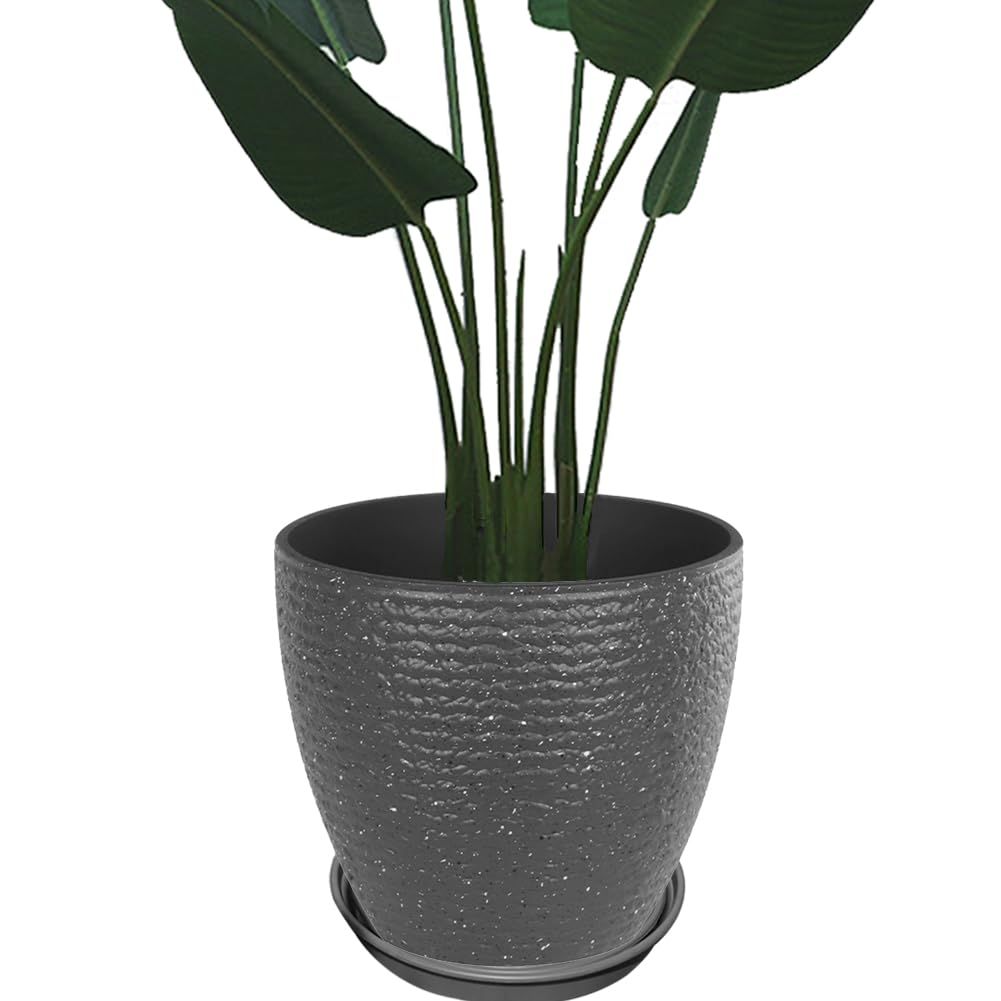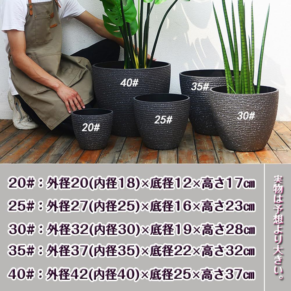 プランター 大型 おしゃれ 受け皿付き 植木鉢 大型 軽量 プラスチック 屋内 屋外用 プランター 深型 高さ32cm 排水穴付き 観葉植物 鉢 植木鉢鉢 (35#,丸型-ブラック)