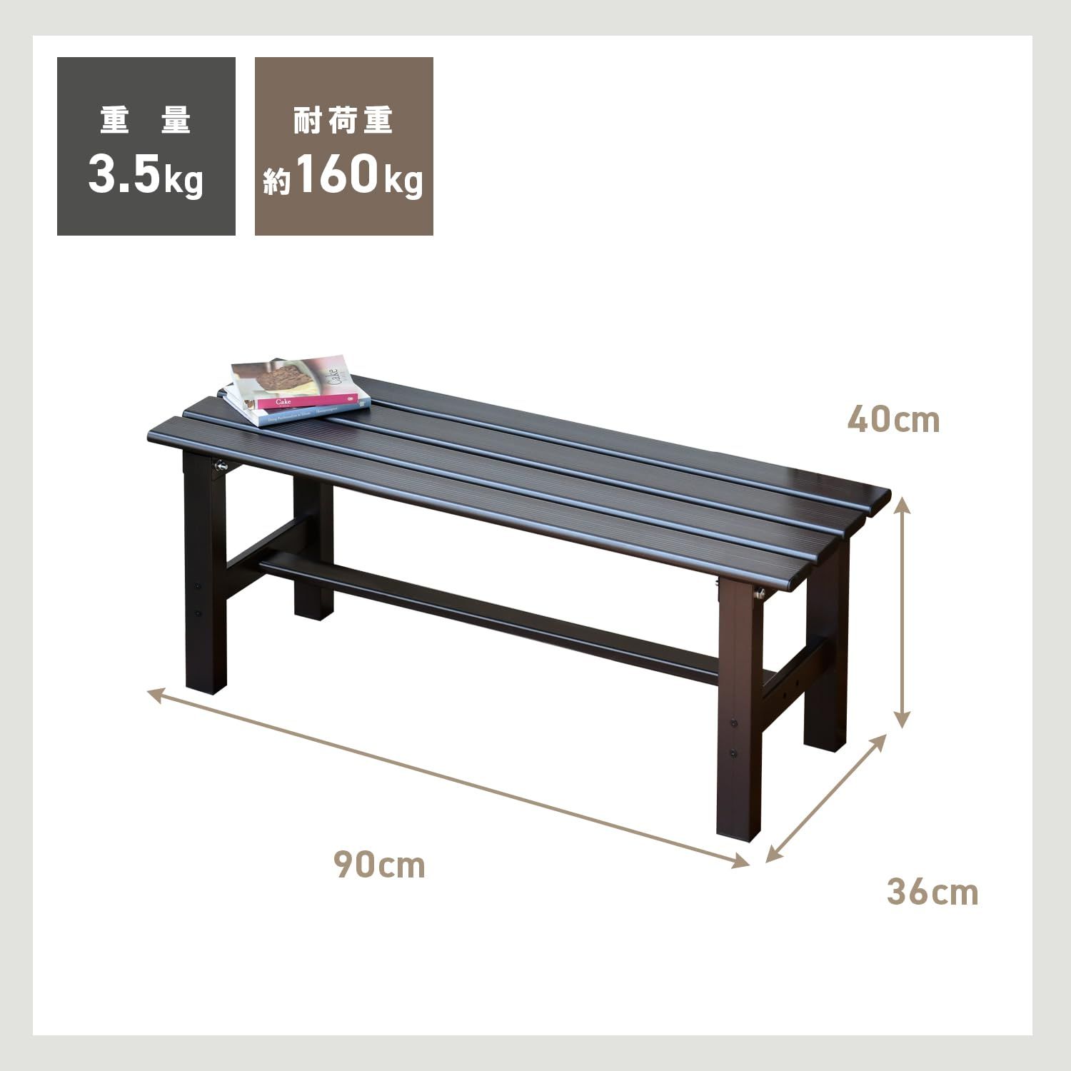 【仕様】本体サイズ:幅90×奥行36×高さ40cm/重量:3.5kg/材質:アルミ/耐荷重:約160kg/カラー:ダークブラウン