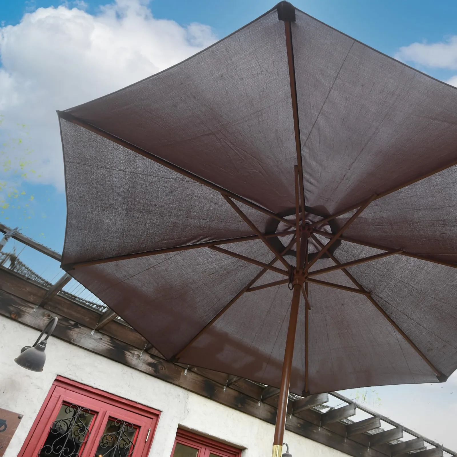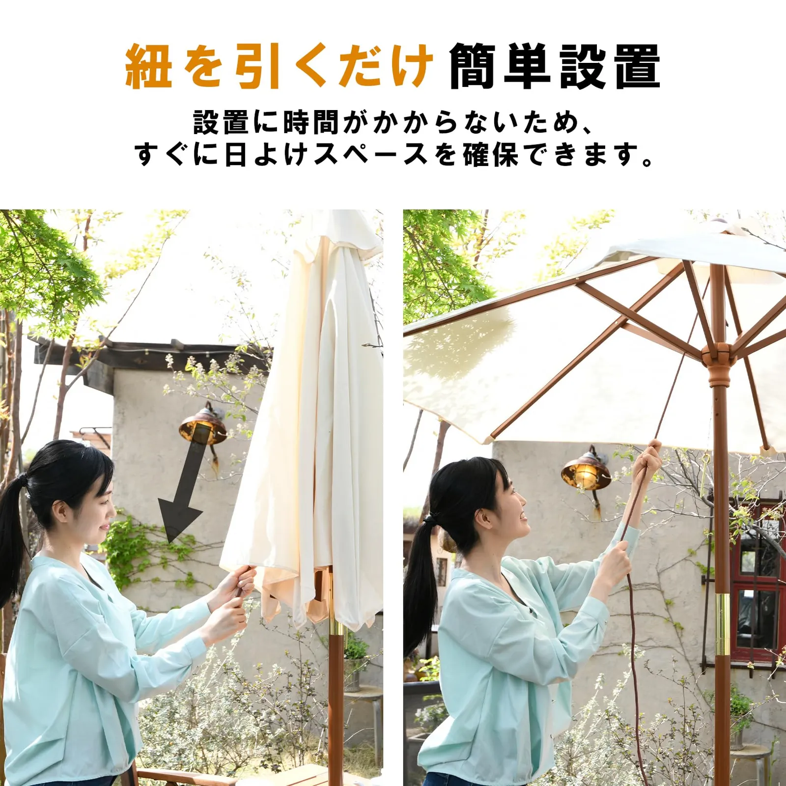 ●お庭、ベランダ、バルコニーなどの日除けに便利な木製パラソルです。(一部取付品)