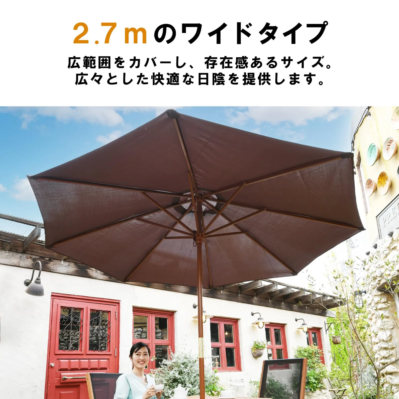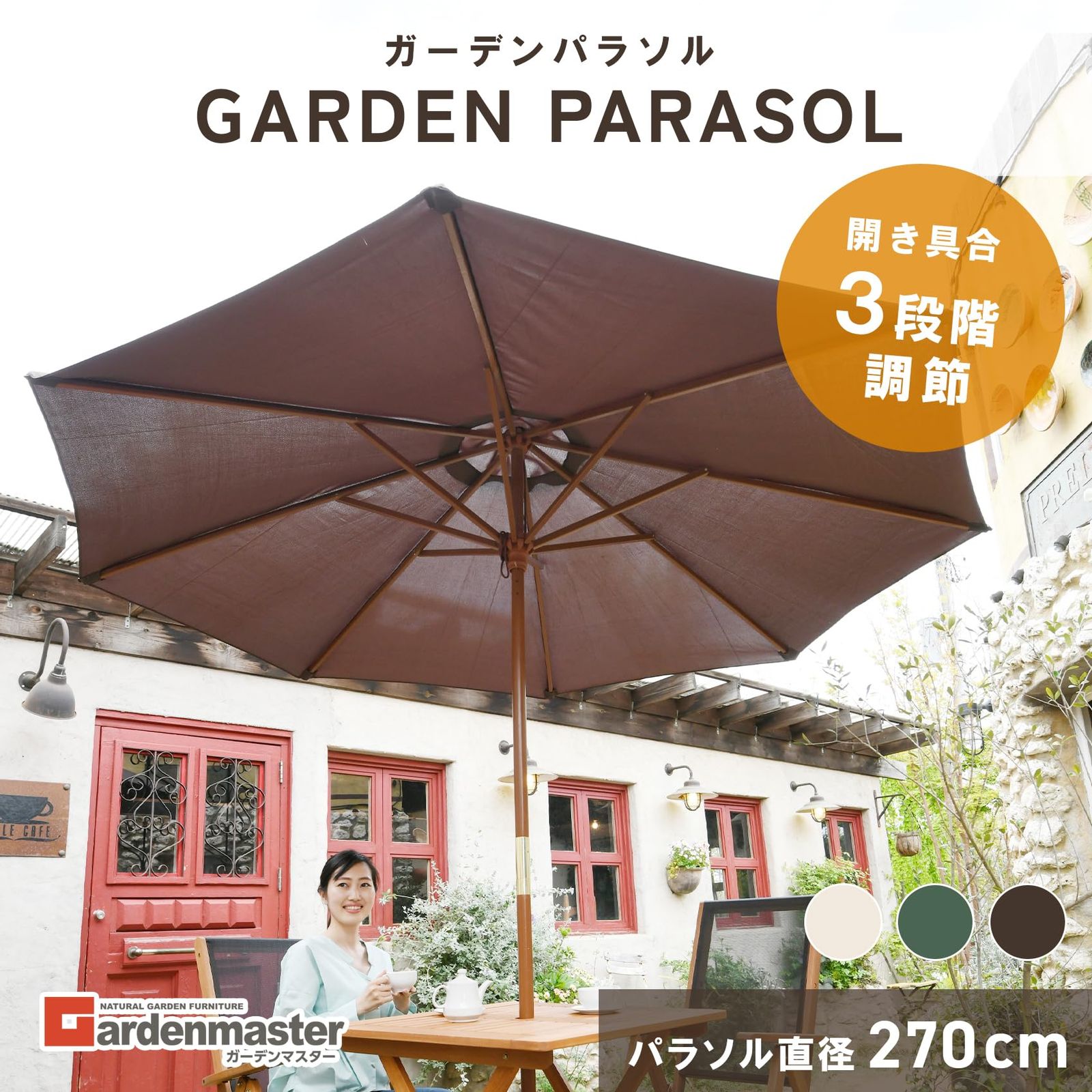 ガーデンマスター(Gardenmaster) ガーデン パラソル 木製パラソル (直径270cm) お庭 ベランダ テラス バルコニー 日よけ 大型 風に強い NMP-27(BR) ブラウン