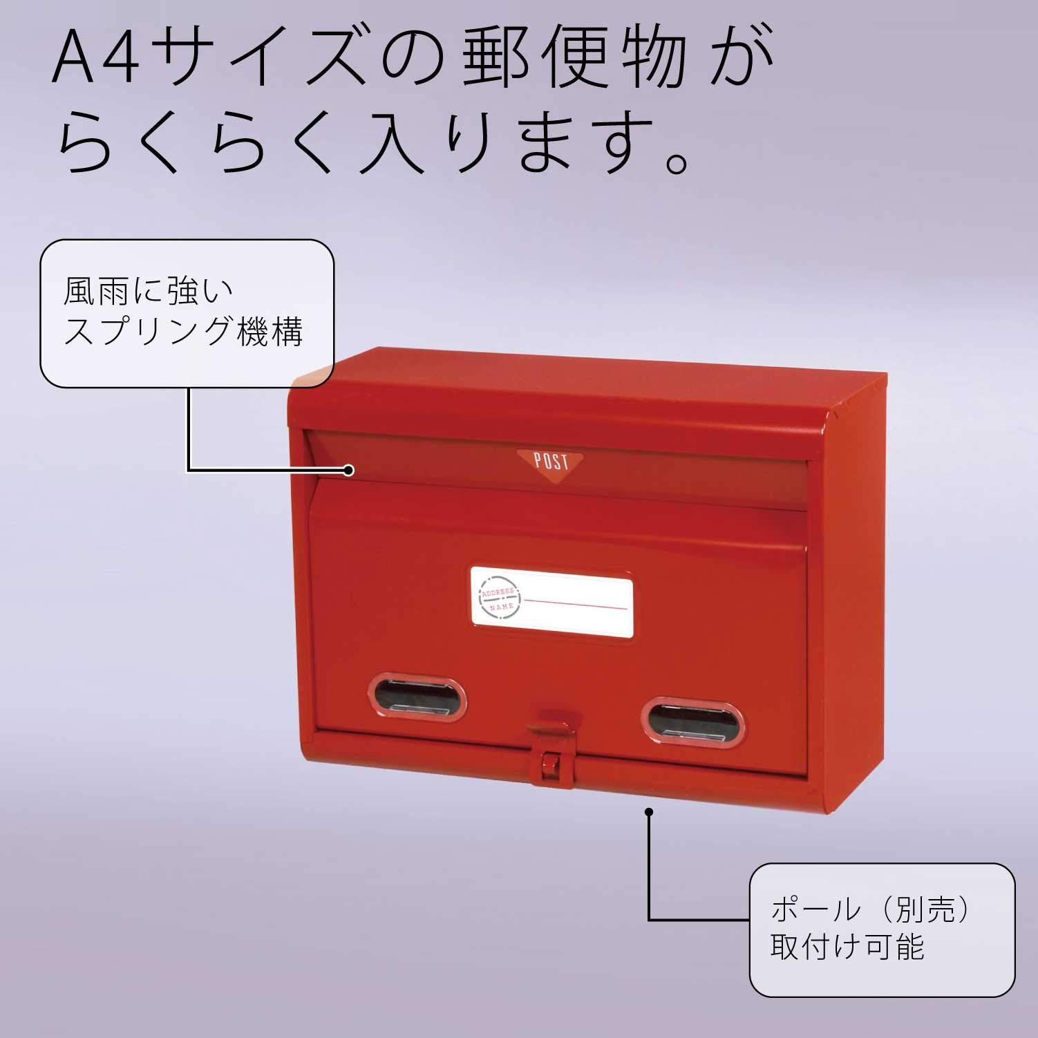 【日本製ポスト】スチール製 A4サイズ対応 南京錠取付可 レッド FH-51R