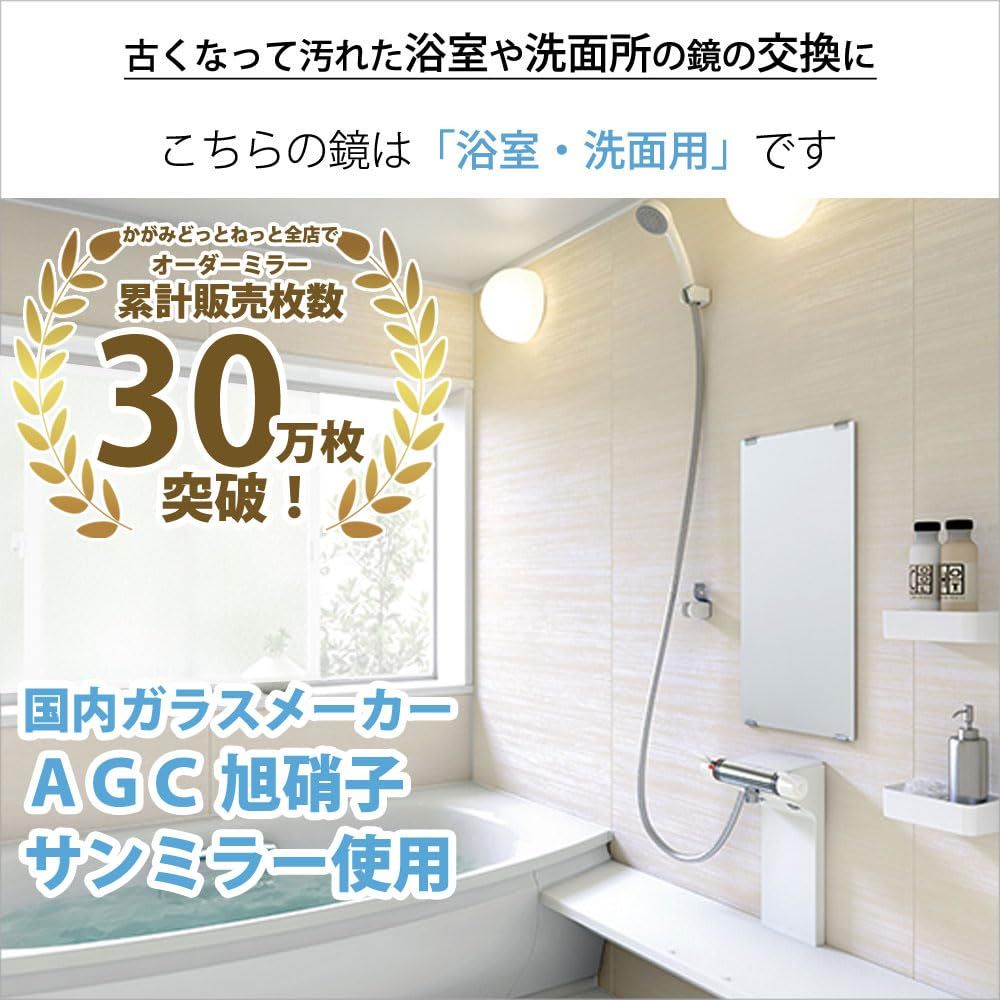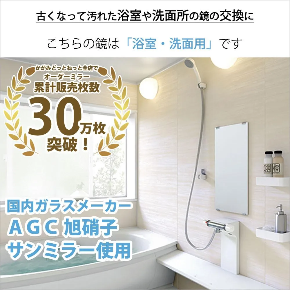 かがみどっとねっと公式|浴室鏡 交換鏡 (厚さ5mm M5 / AGC製ガラス/日本製) 資材付き (取付金具+ミラーマット) お風呂・ユニットバス / 305×457mm 縁のみ防湿 (洗面所対応)