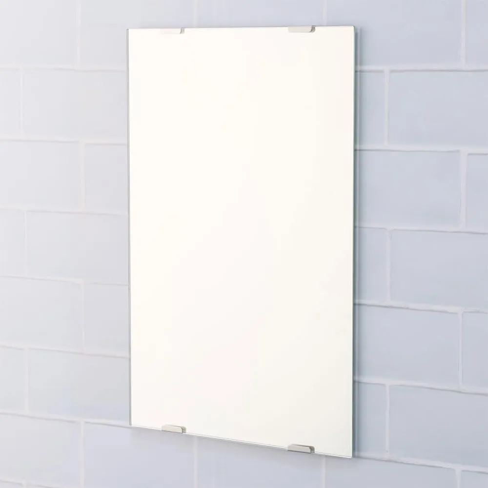 【選べるサイズと厚み】 本商品は、幅305mm×長さ457mm・厚さ5mmのガラス鏡です。縁には安全性と美観に配慮した「糸面取り」加工を施しています。全9サイズからお選びいただけます。その他のサイズは、納期や仕様が異なる「オーダーミラー商品」にて展開しています。
