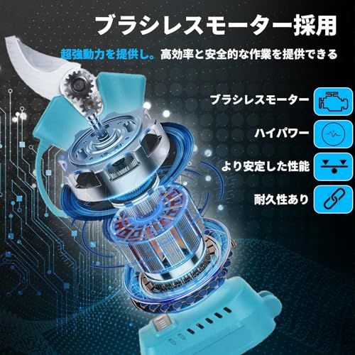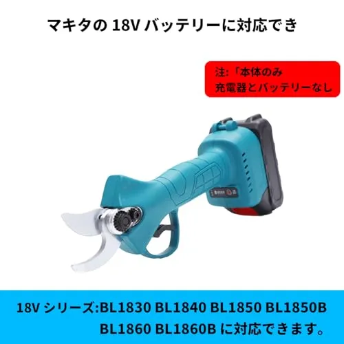 【ブラシレスモーター】:枝切りバサミ鋏は純銅のブラシレスモーターを採用して強い働力を提供します。安全、耐久性、騒音が低く、安定してスムーズに働作できます。マキタ18vリチウムイオン電池に対応しています。真田ブランドの18vバッテリーに対応し、18vシリーズBL 1830bl 1840bl 1850bl 1850b BL 1860bに対応しています。(注意:充電器やバッテリーはありません)