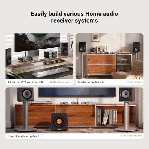 【300W300Wステレオアンプモード】AIYIMA A07 MAXパワーアンプは、パッシブ本棚タワー型スピーカーデスクトップホームシアター用2チャンネルオーディオコンポーネントアンプとして使用することができます最大出力600W(300W *2アンダー@4Ω)、2-8Ωスピーカーを駆動することができ、そのコンパクトなサイズは、様々なアプリケーションに適しており、簡単にあなたの本棚/デスクトップ/ホームシアターを設定することができます。