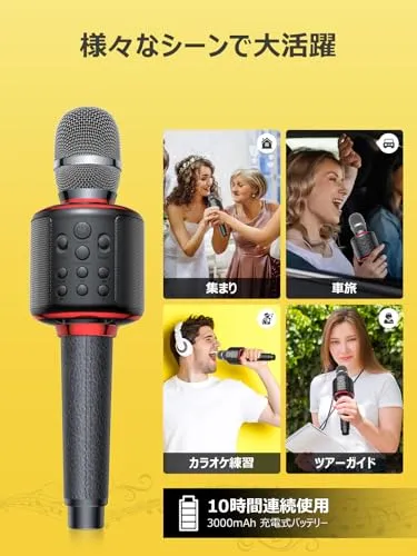 【こだわりの品質】細部までこだわりの一体型カラオケマイク。触って感じられる上質のレザーハンドルは、握りやすくて汚れに強いです。3000mAh 充電式バッテリーが内蔵し、約3時間の充電時間で、最大 10 時間の連続再生が可能になります。フック付きの丈夫なPU収納ケースが付属しており、持ち運びや保管にも簡単です。
