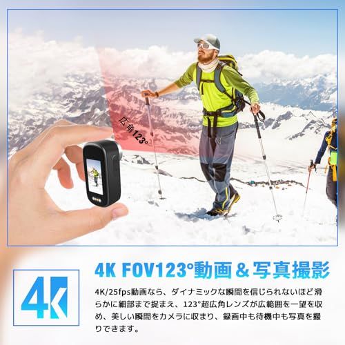 【4K超高清画質&あらゆるモビリティシーンの不安を解消】800万画素の高解像度アクションカメラは4K超高清画質撮影可能。F2.0大口径絞りと123 FOV超広角の組合わせる小型カメラは繊細な画面の詳細を表現するだけでなく、広範囲視野を一望に収め、バイクや自転車や自動車ライフを鮮明に記録、旅行中に美しい風景も高画質で保存可能です。更に、通勤中の事故やトラブルも証拠として活用できます。