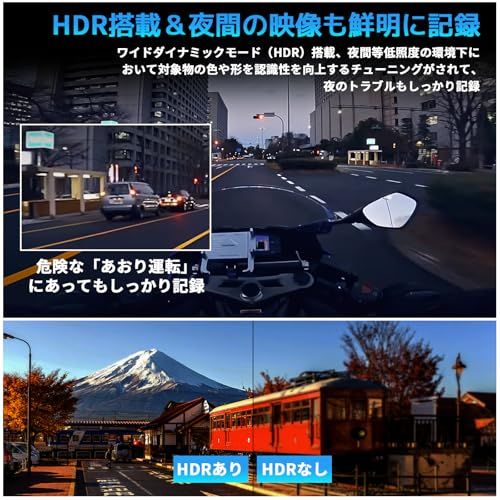 【HDR搭載&夜間の映像も鮮明に記録】ウェアラブルカメラはHDR搭載し、広いダイナミックレンジで撮影し、低照度露出効果を高めて、夜間等低照度の環境下において対象物の色や形を認識性を向上するチューニングがされて、夜の風景もトラブルもしっかり記録できます。