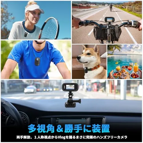【多視角&勝手に装置】両手解放、1人称視点からVlogを撮るまさに究極のハンズフリーカメラ、小さくて携帯性に優れ、長時間駆動することができ、大切な瞬間を撮り逃しません。電源配線不要、標準的な1/4ユニバーサルナット、取付け/取外し超簡単で、付属した取付マウント、様々なマウント部品と組合わせ手使用、取付場所・使い方はあなたのアイディア次第。