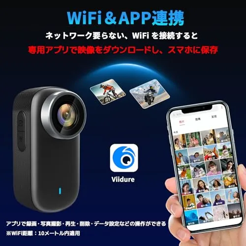 【WiFiカメラ&APPスマホ連携】本機はネットワークいらない、カメラのWi-Fi ホットスポットを接続すると、専用アプリで映像をダウンロードし、スマホに保存できます。更に、アプリにデータ設定や動画や写真撮影等の機能を制御できて、記録した映像の確認や再生、保存、削除などのさまざまな操作が直感的にできます。GPS内蔵で走行速度を測定でき、走行軌跡を記録でき、非常に有用です。※APホットスポット距離:10メートル内適用、AP接続モードだけ対応、IP接続モードに対応していません。