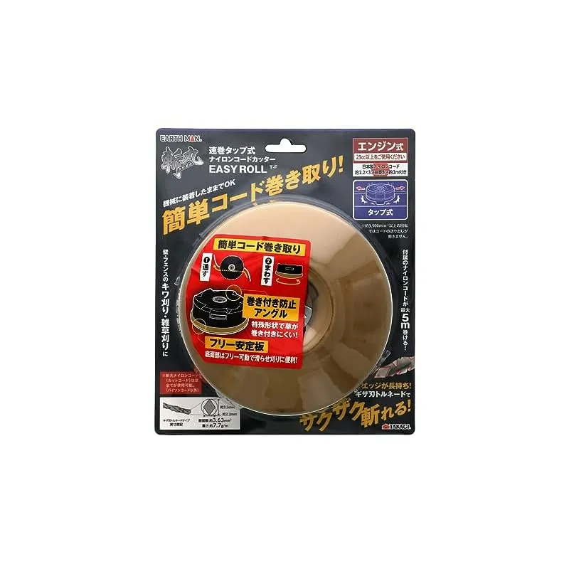 商品名:儀(Takagi) EARTH MAN 斬丸 速巻 タップ式 ナイロンコードカッター 簡単コード巻き取り 巻き付き防止アングル特殊形状で草が巻き付きにくい フリー安定板 底面部はフリー可動で滑らせ刈りに便利 EASYROLL T-F