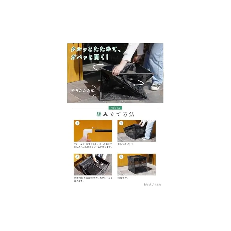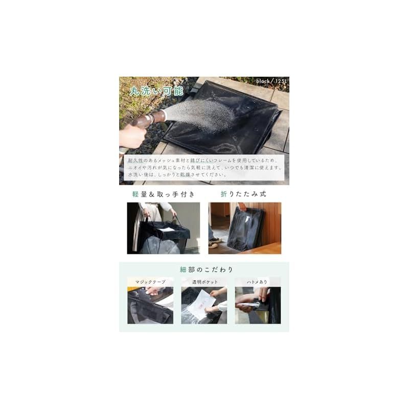 【高強度フレーム×高密度ネット】creer(クレエ) カラスよけゴミ箱 折りたたみ [ 選べる3サイズ × 4カラー ] 軽量 ゴミネット ボックス 大容量 屋外 屋内 (125L / ブラック)