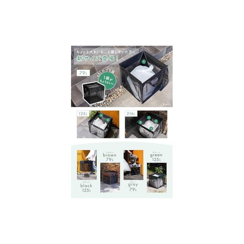 【45Lゴミ袋約袋収納可能!!】79L / 125L/ 216Lの選べる大容量ゴミステーションを簡単組立。大型な固定されたものではなく、軽量なゴミネットボックスなのでバルコニーや庭、玄関先など設置場所を選びません。メッシュデザインで臭いもこもらないので一時置きに最適です。