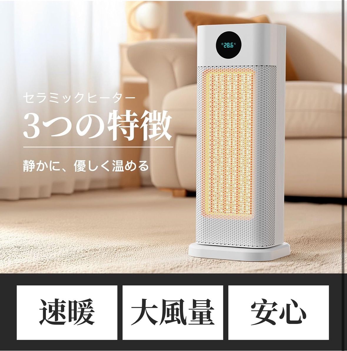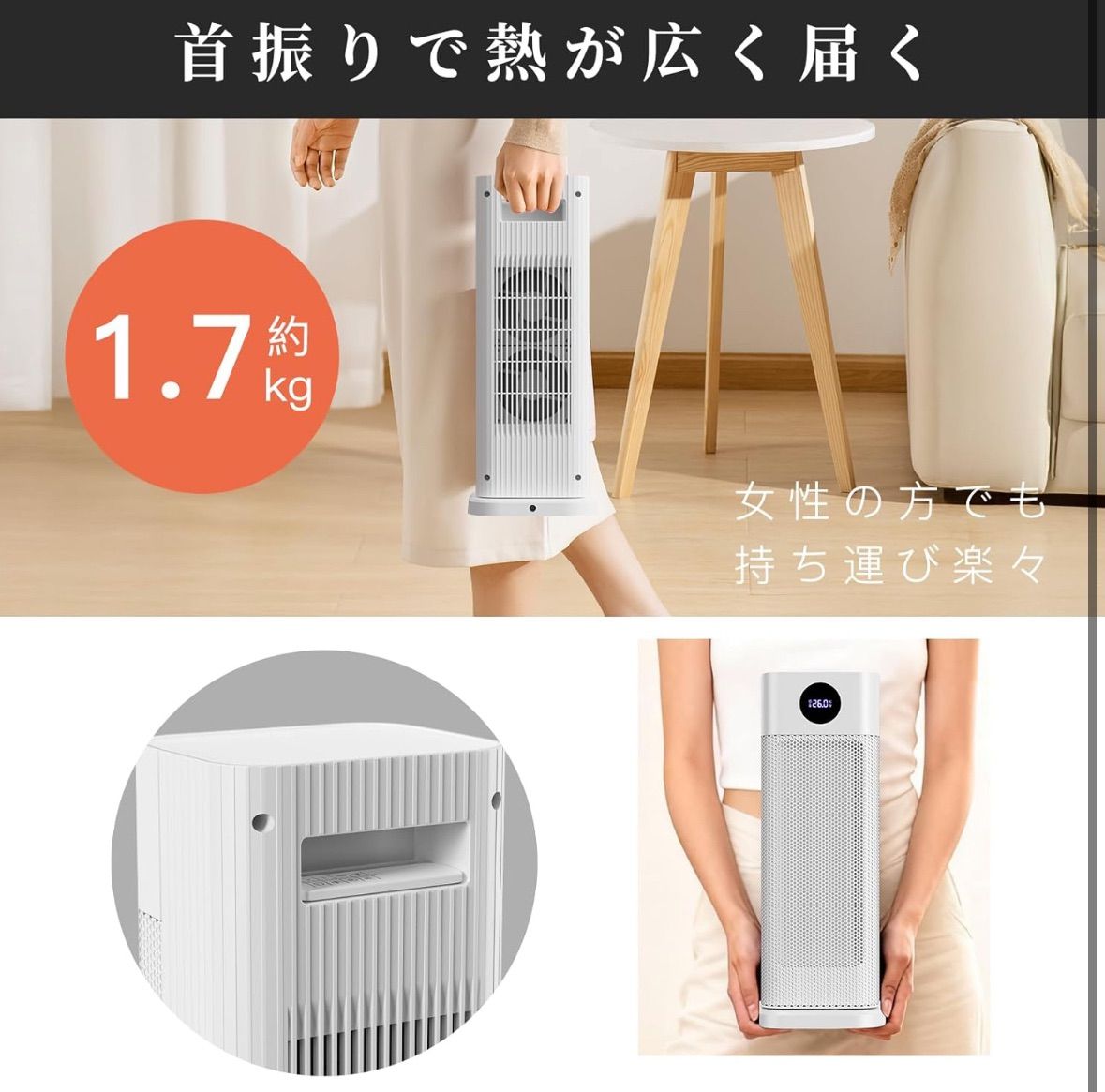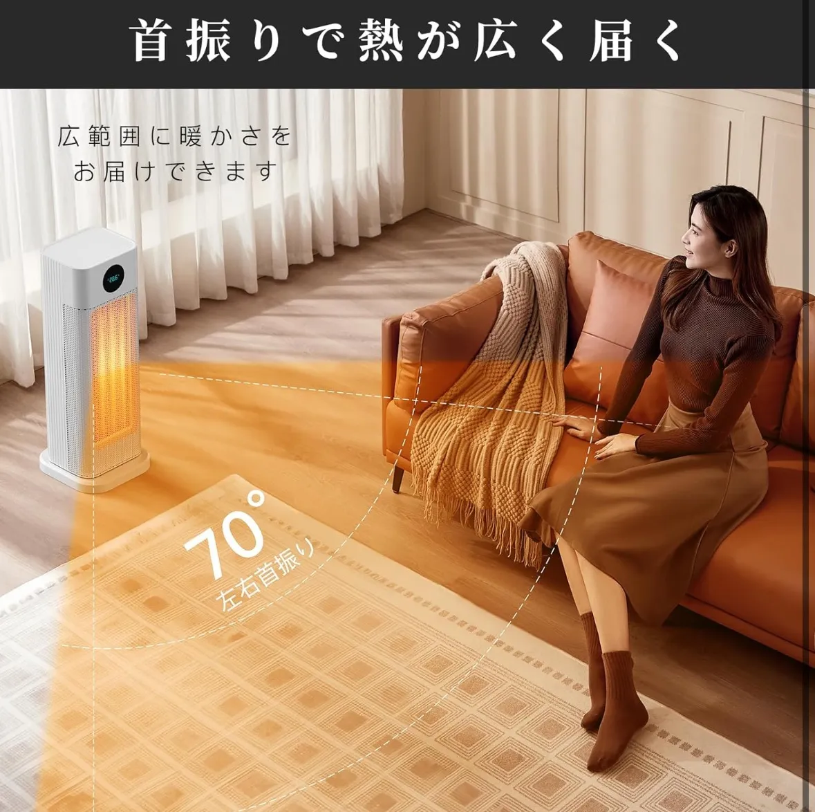 わずか2秒で温風がスタートする驚異の速暖性能を実現。70度の広範囲に及ぶ左右自動首振り機能で、部屋の隅々までムラなく暖めます。軽量コンパクト設計(約1.73kg)で持ち運びも簡単。リビングや寝室はもちろん、トイレや脱衣所など家中の寒いスポットで大活躍するマルチな暖房器具です。暖房効率を最大限に高める独自の風路設計が特徴です。
