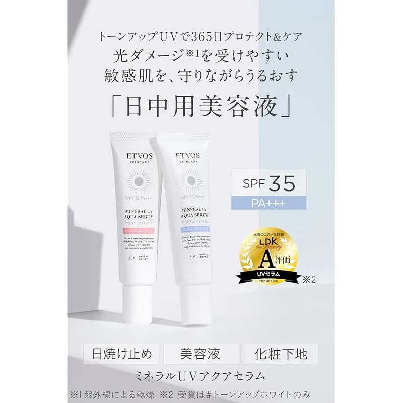 商品名:エトヴォス ミネラルUVアクアセラム SPF35 PA+++ 30g #トーンアップホワイト