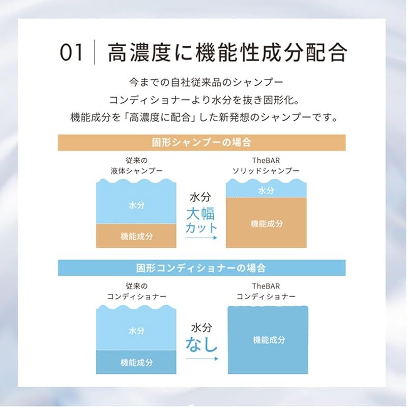 【TheBAR ザ・バー シャンプーコンディショナーセット】固形シャンプー80g・固形コンディショナー82gセット(簡易バー置きシート付属)フローラルピュアブーケの香り