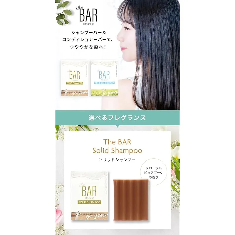 商品名:TheBAR 固形シャンプー&固形コンディショナーセット 低刺激 泡立ち 機能性成分配合 ツヤ 保湿 高濃度 オーガニック シャンプーバー フローラルピュアブーケの香り 日本製