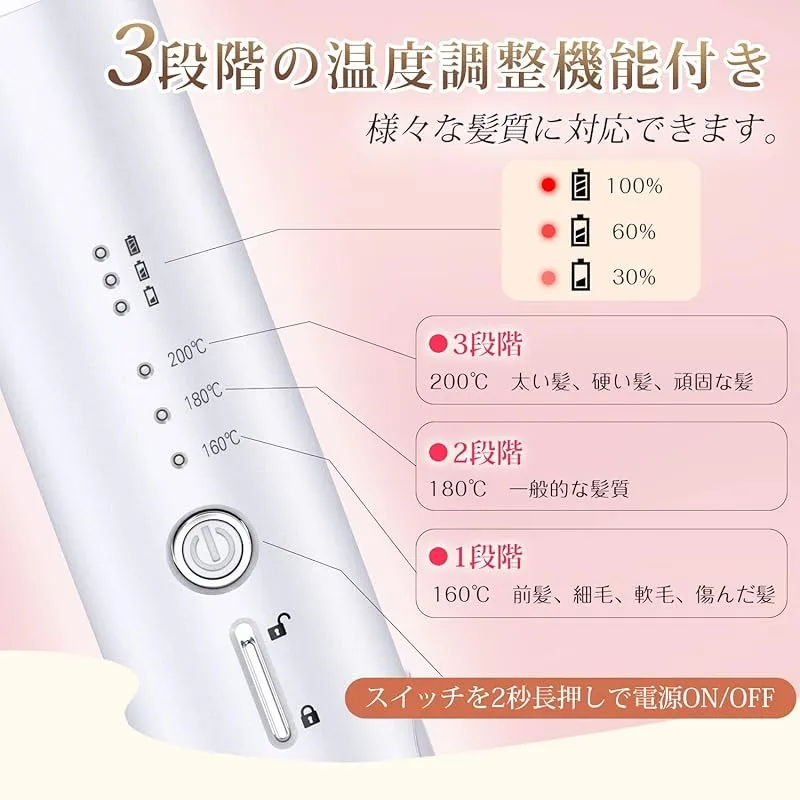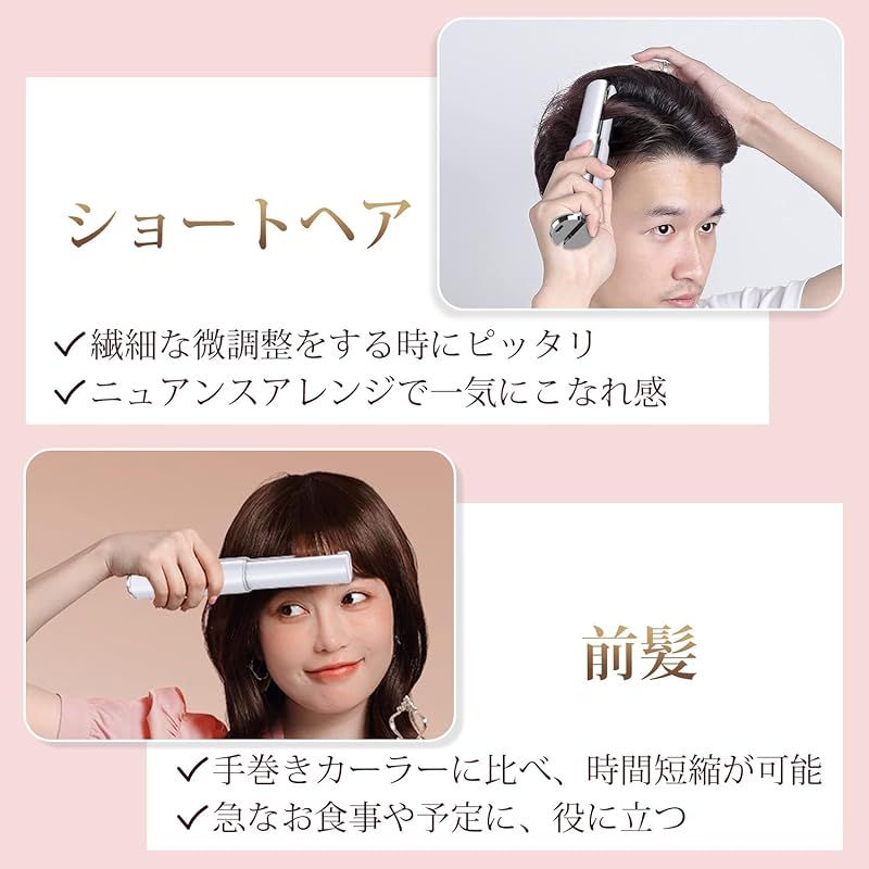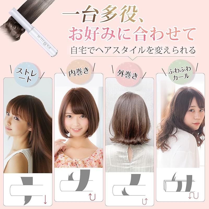 商品名:ヘアアイロン コードレス ストレート ミニ ヘアアイロン 2way カール&ストレート 3段階温度設定可能 ワイヤレス 前髪 軽量 日本語説明書付き(ホワイト)