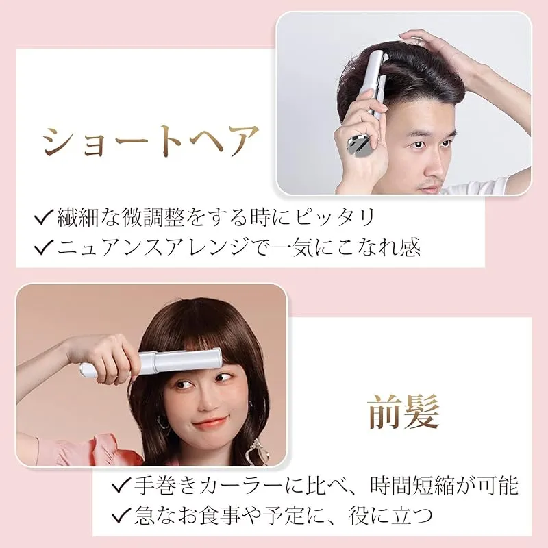 一本で、カールヘアにしたいとき、ストレートに決めたいとき、ヘアアイロンを使えば気分に合わせて自在にヘアスタイルをアレンジできます。また、ションプレートは髪に優しいセラミックコーティングを採用し、髪が傷つくのを防ぎます。初心者の方でも思い通りのヘアセットが可能になります。メンズ レディース両用タイプです。