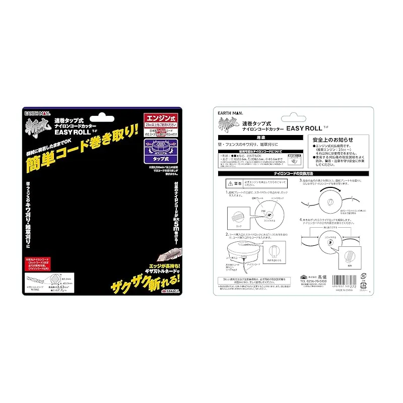 商品名:儀(Takagi) EARTH MAN 斬丸 速巻 タップ式 ナイロンコードカッター 簡単コード巻き取り 巻き付き防止アングル特殊形状で草が巻き付きにくい フリー安定板 底面部はフリー可動で滑らせ刈りに便利 EASYROLL T-F