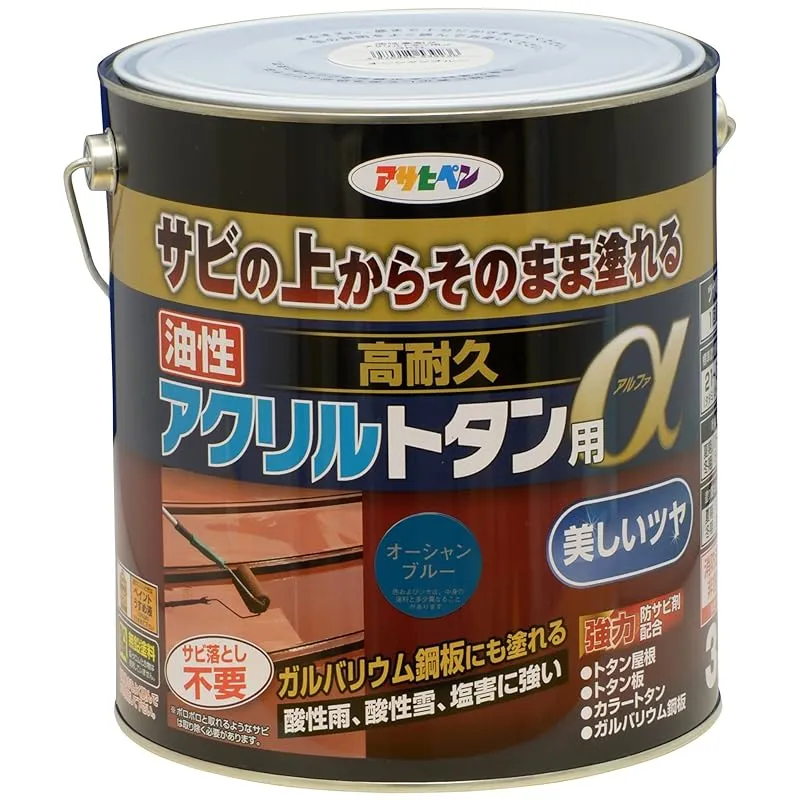 アサヒペン 油性高耐久アクリルトタン用α 塗料 3kg オーシャンブルー
