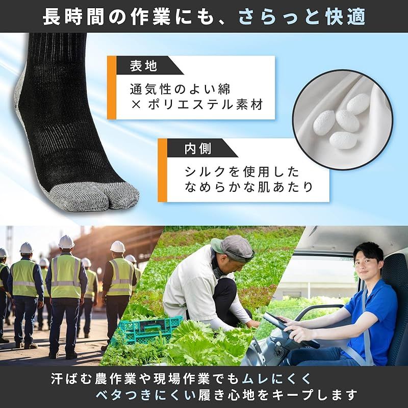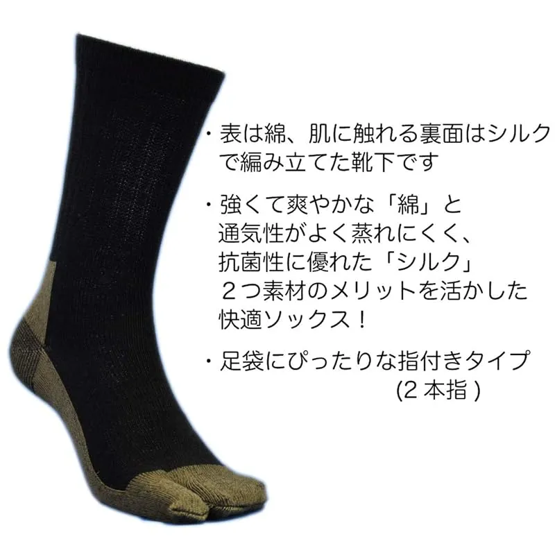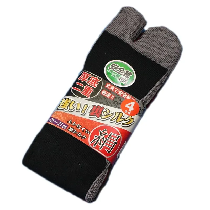 【新品】 [ハヤシ] 靴下 メンズ 軍足 指付 吸湿シルクで蒸れずに快適!破れにくく安全靴に最適ソックス 強い綿!ムレない裏シルク 厚底2重 2本指 4足組 25~27cm SI768