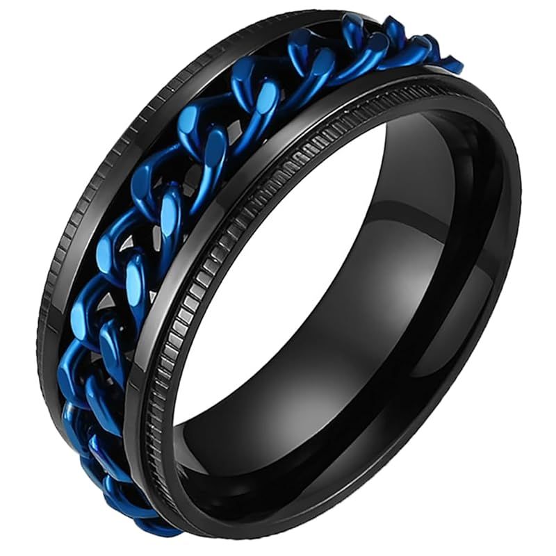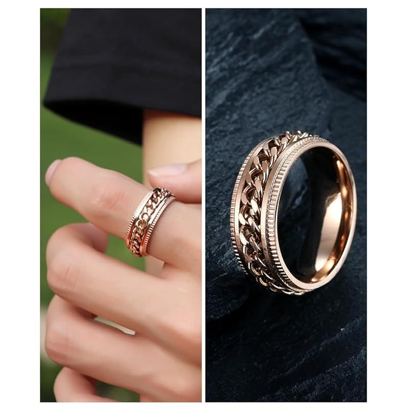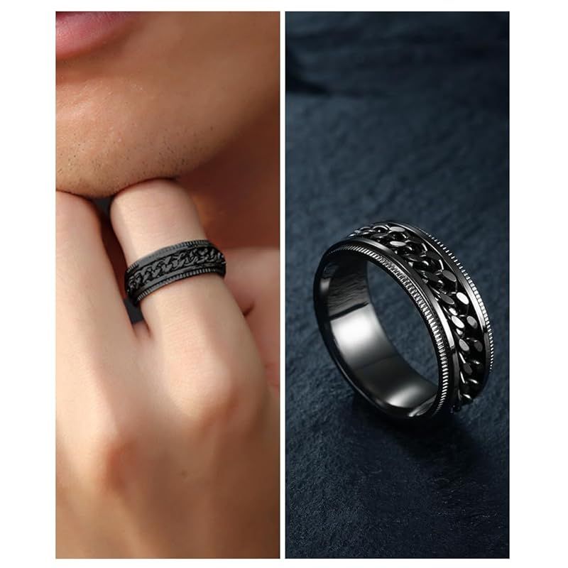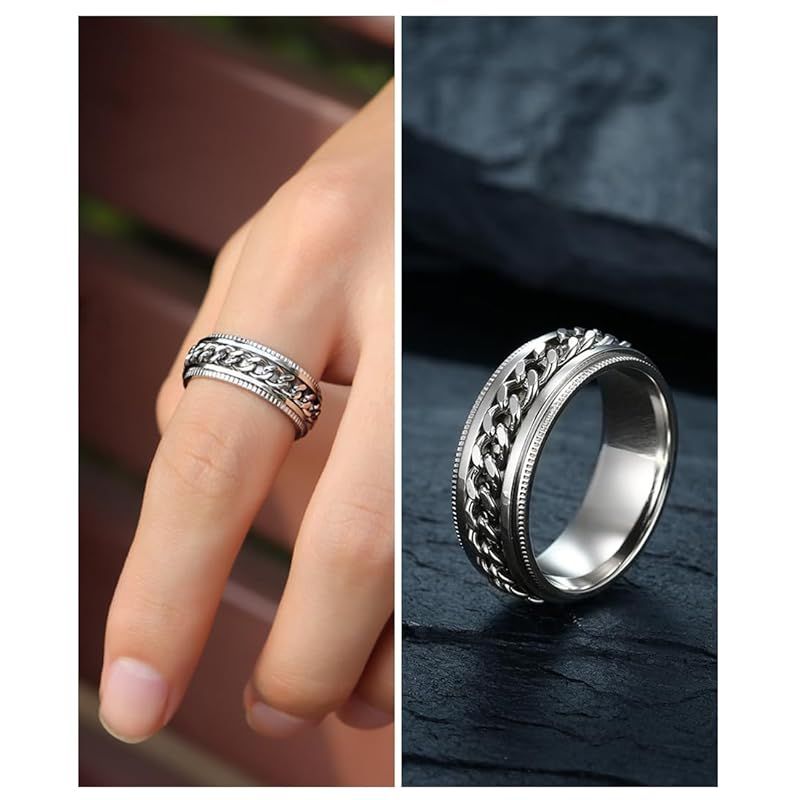 【スピンリング/ストレス解消】チェーン部分が回転します。スピンリングはハンドスピナーのように目立つことがなく、日常で着用しながら回転させることができます。このリングを回転させるという行為は、不安を軽減して気持ちを落ち着かせるという心理的効果があります。