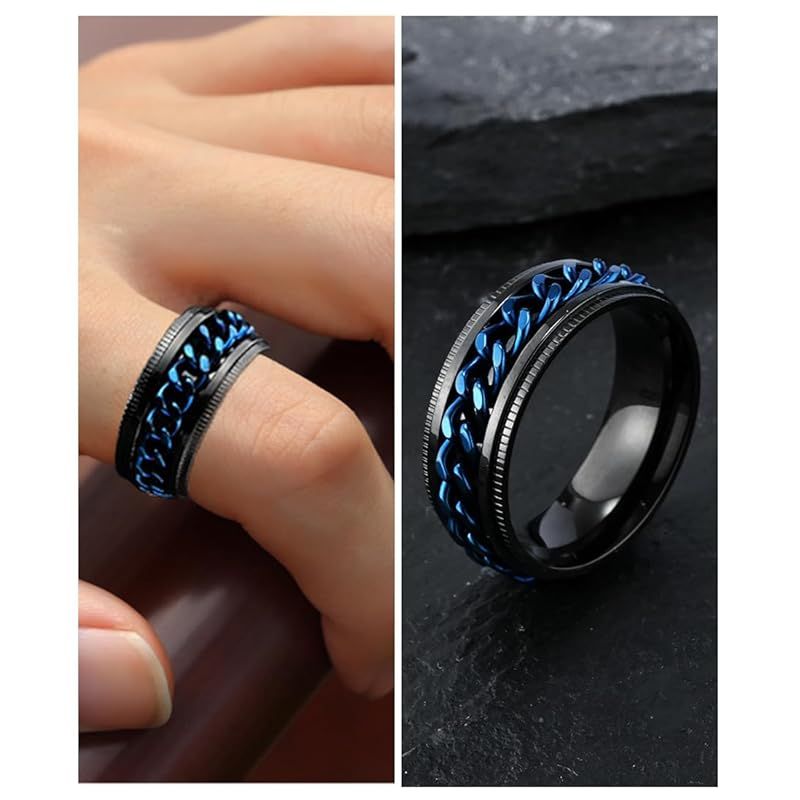 【新品】 [GEJ-Tech] メンズ 指輪 喜平チェーン チタン リング ステンレス 回転 メンズリング (13,ブラック/ブルー)