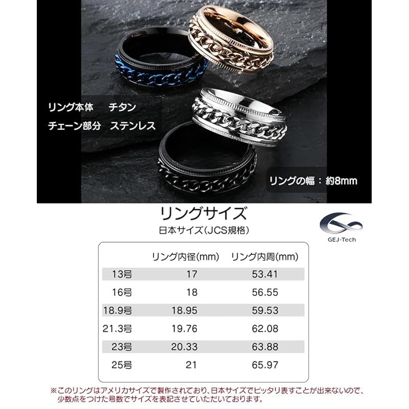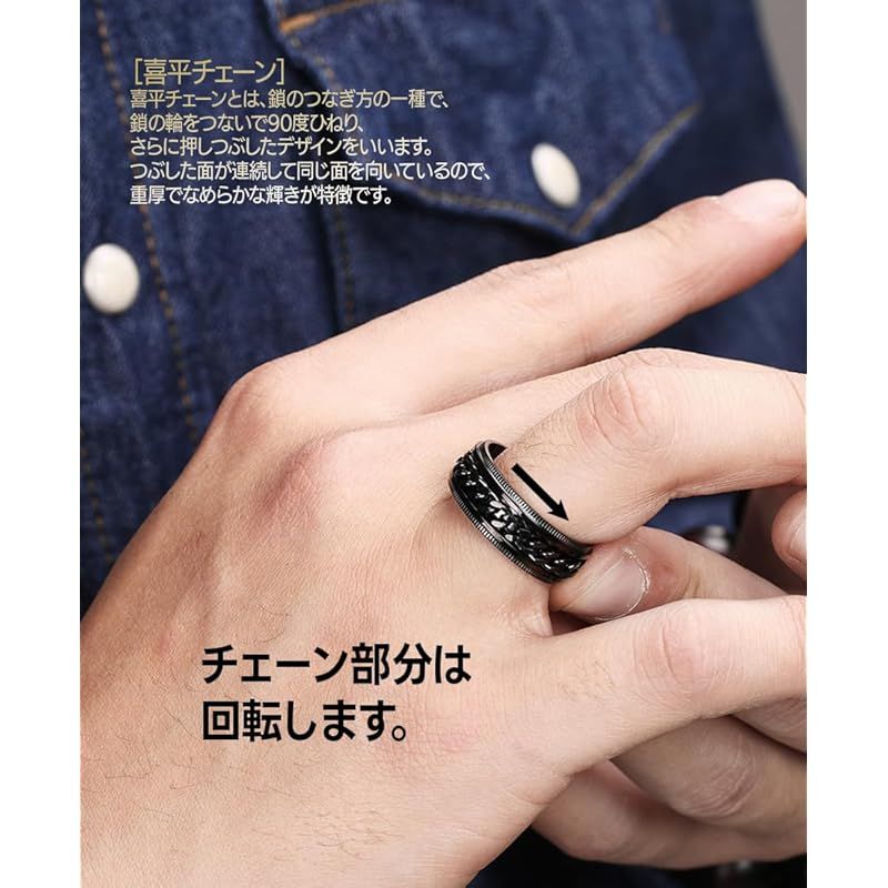 GEJ-Tech メンズ 指輪 喜平チェーン チタン リング ステンレス 回転 メンズリング真ん中で回転する喜平チェーンをデザインに取り入れた、シンプルでおしゃれなメンズリングです。