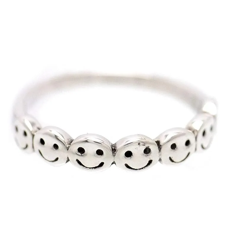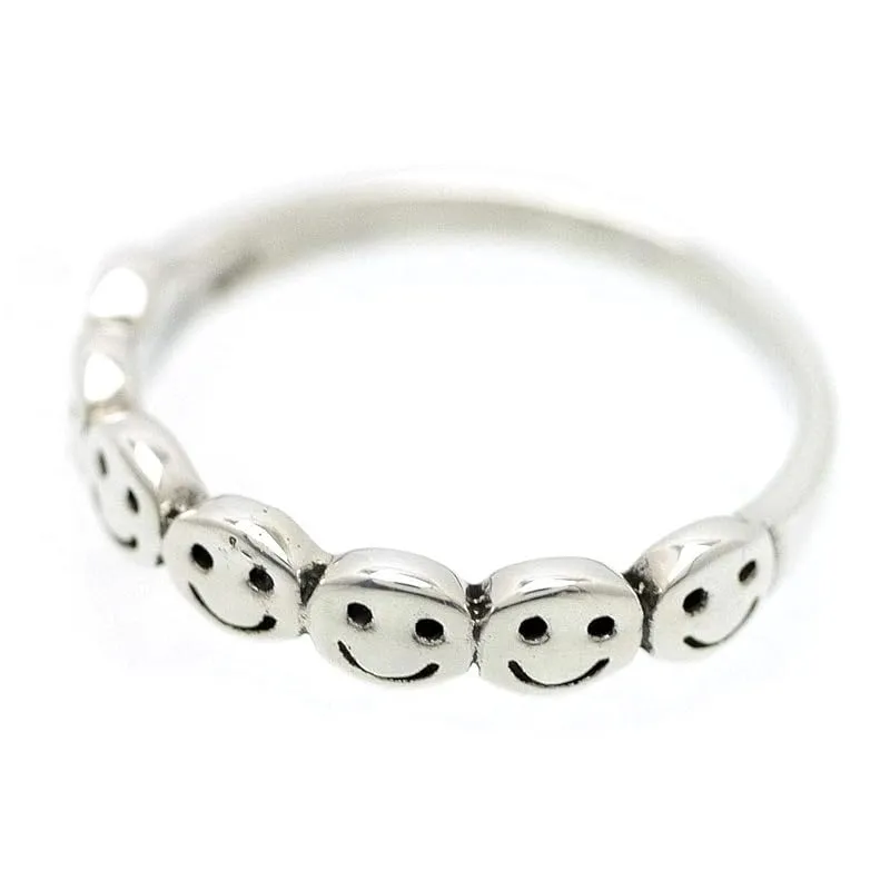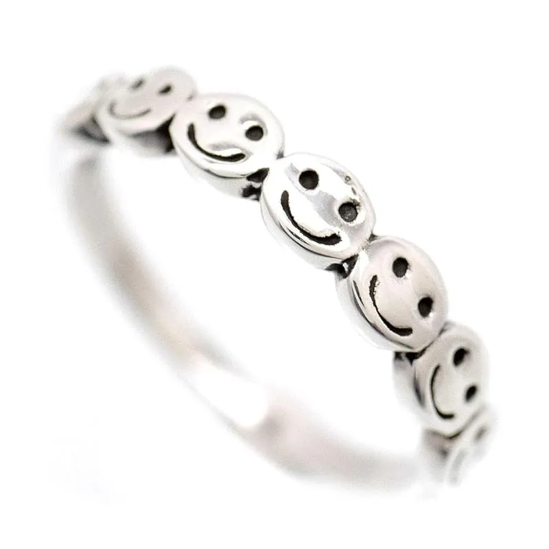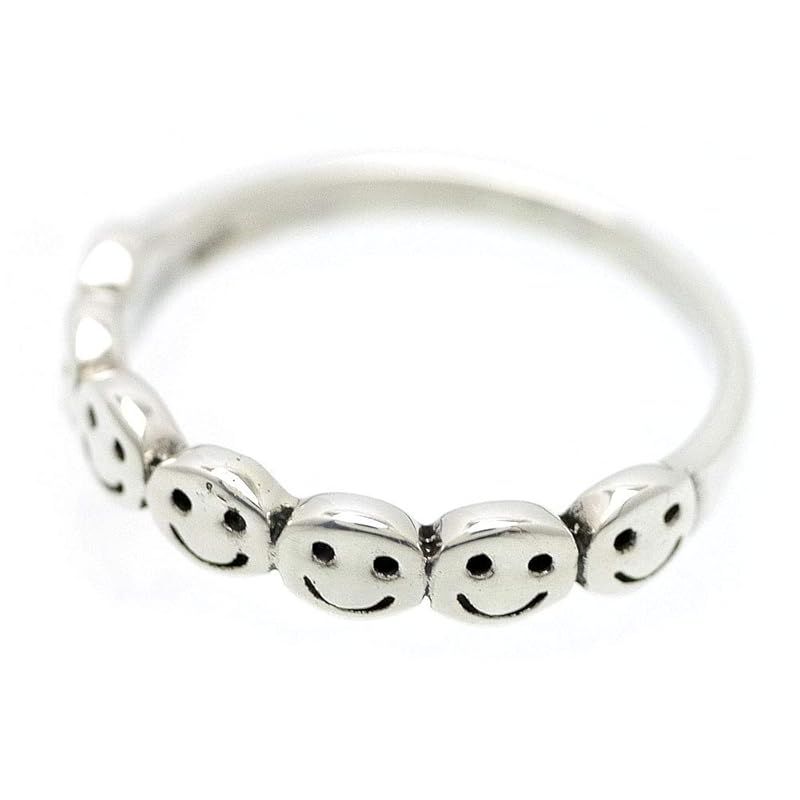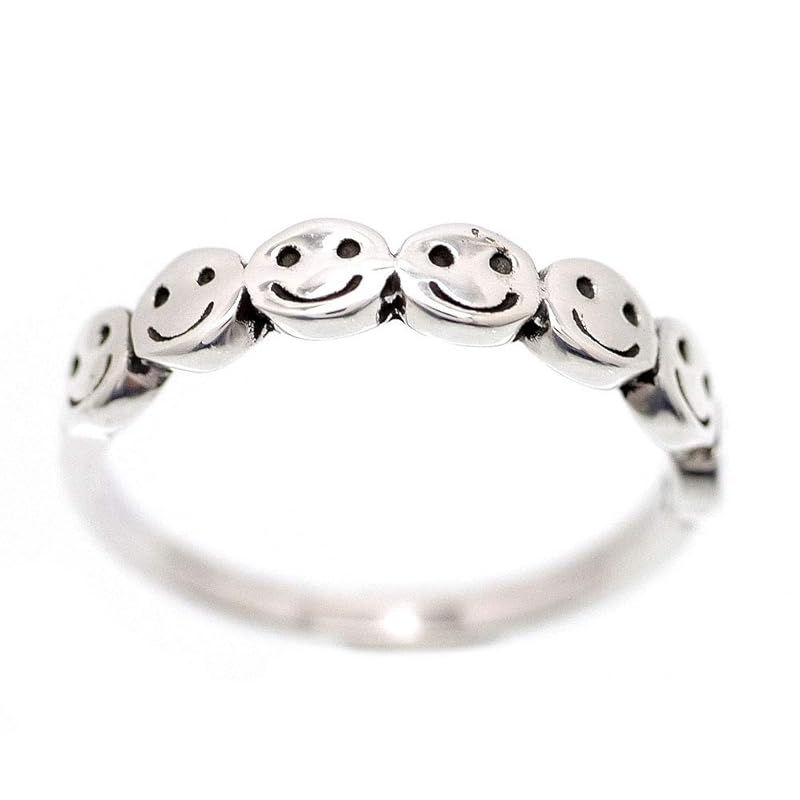【新品】 [シルバーワン] シルバー925 ニコちゃん マーク パヴェ スマイル リング メンズ c6 [13号] 喜平 細め