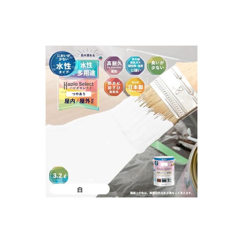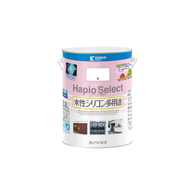 商品名:カンペハピオ(Kanpe Hapio) ペンキ 塗料 水性 つやあり 白 3.2L 水性シリコン多用途 日本製 ハピオセレクト 00017650011032