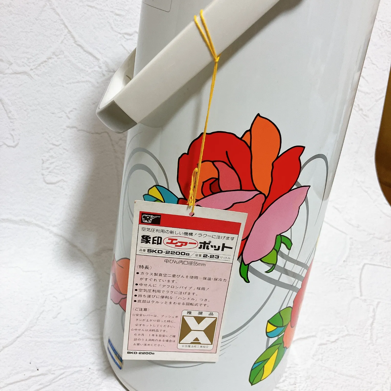 象印製 エアーポット SKD-2200B です。 昭和レトロな花柄デザインのモデルになります。 ・容量:2.2L ・中びん口径:55mm ・型番:SKD-2200B 新品未使用品ですが、長期保管品のため本体にスレ・小キズ等が見られる場合があります。 実使用はしておりません。 付属品は本体・取扱説明書のみです(外箱はありません)。 レトロ家電・コレクション用途にもおすすめです。 状態は写真にてご確認ください。