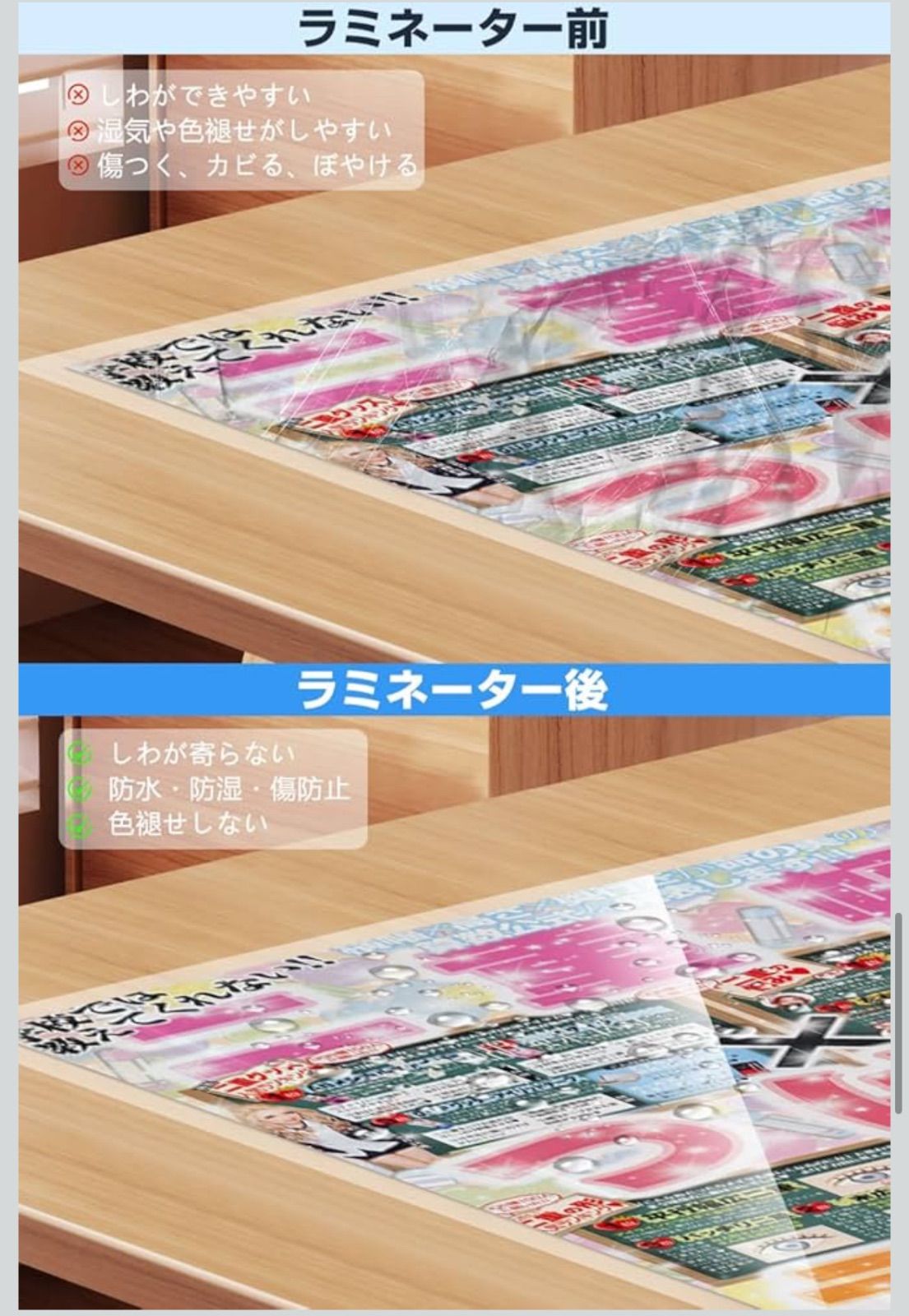 内部の多ローラー構造により、圧力が均一にかかり、初心者の方でもプロのように完璧な平坦さを実現します。大切な証明書も、思い出の写真も、気泡やシワの心配なく、美しく鮮明にラミネートできます。