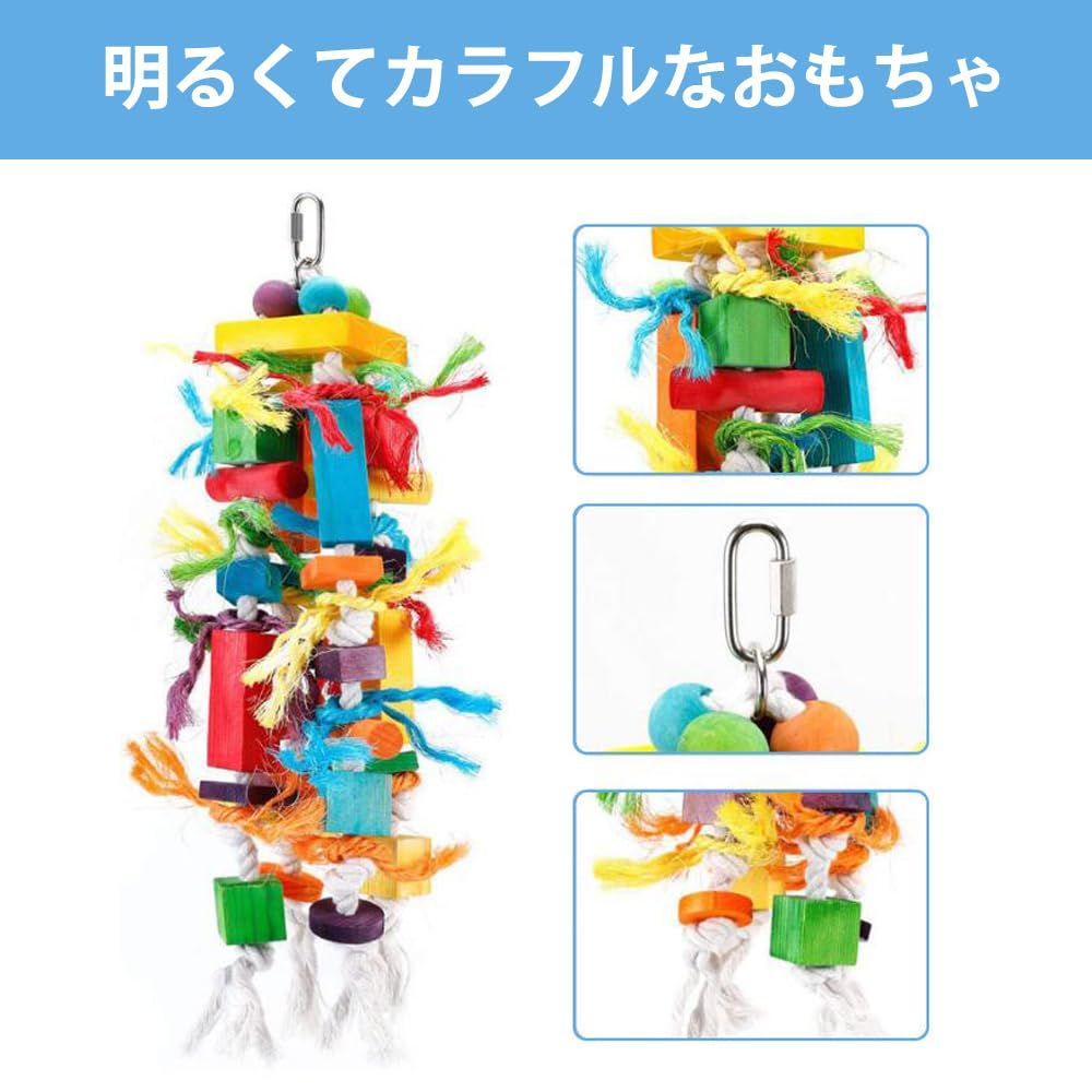 【明るくてカラフルなおもちゃ】明るい色は、鳥たちを楽しませます。鳥は色鮮やかなものを見ると探検する傾向があります。子供のように遊ぶことが大好きな鳥は、ケージの中に座っているよりも常に何かを探しています。このカラフルな鳥用おもちゃは、鳥にとって最適な遊びを提供します。