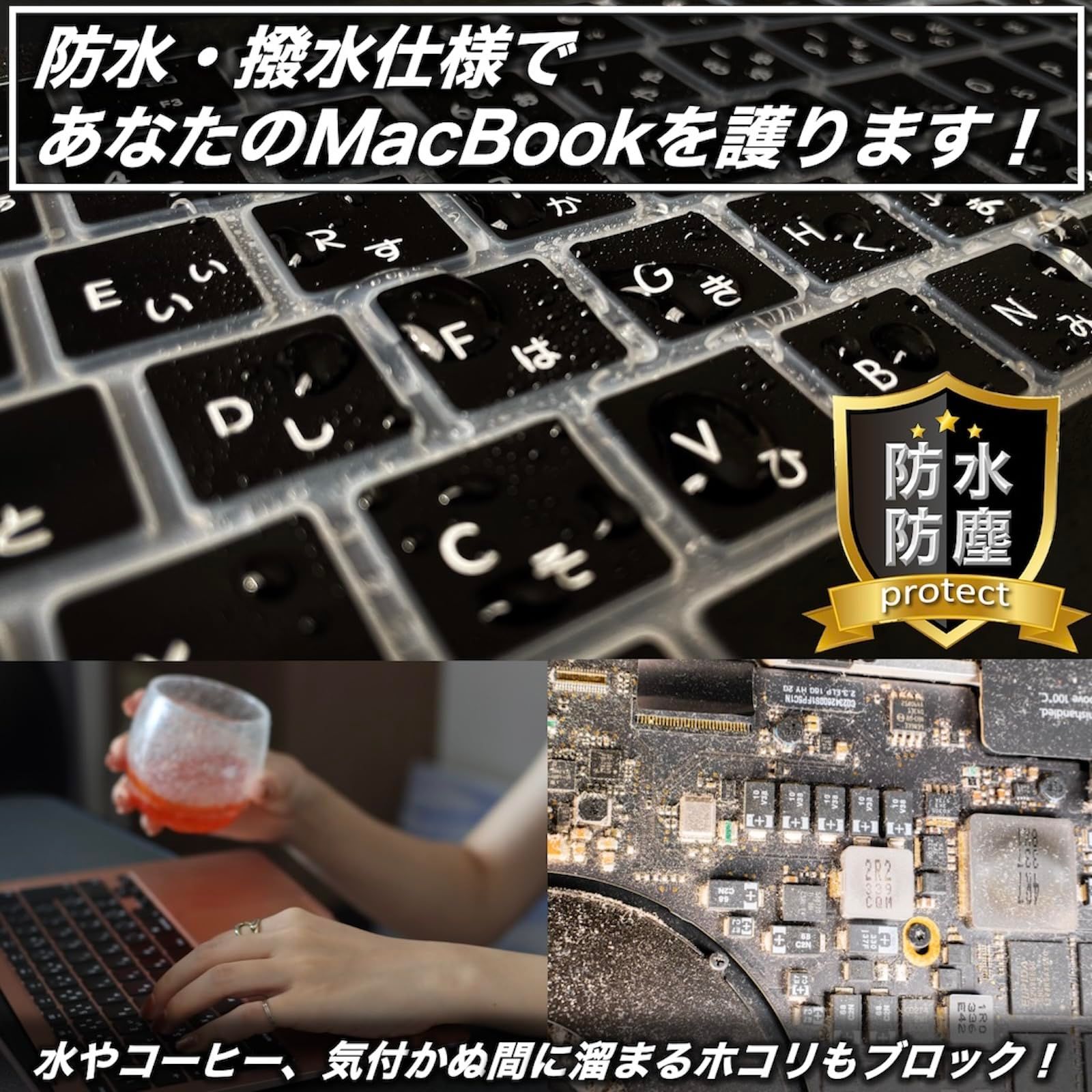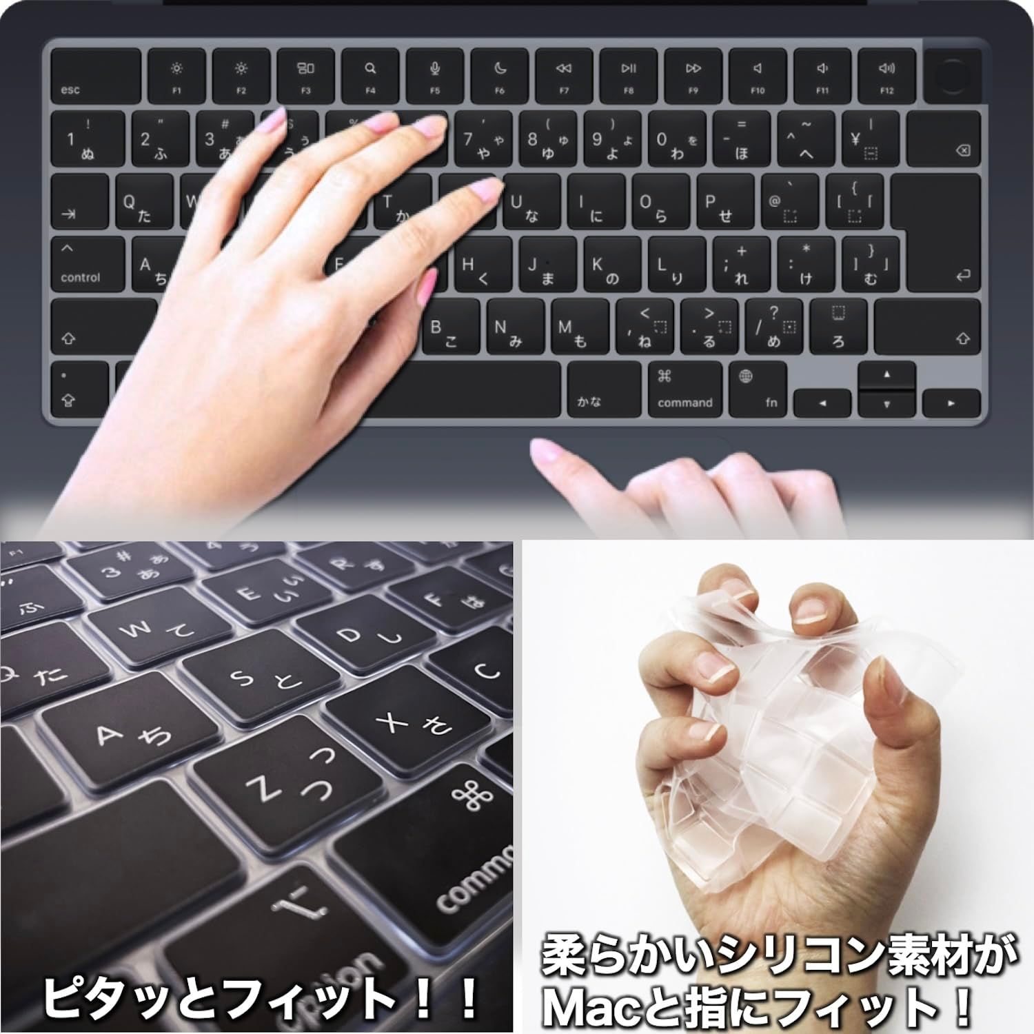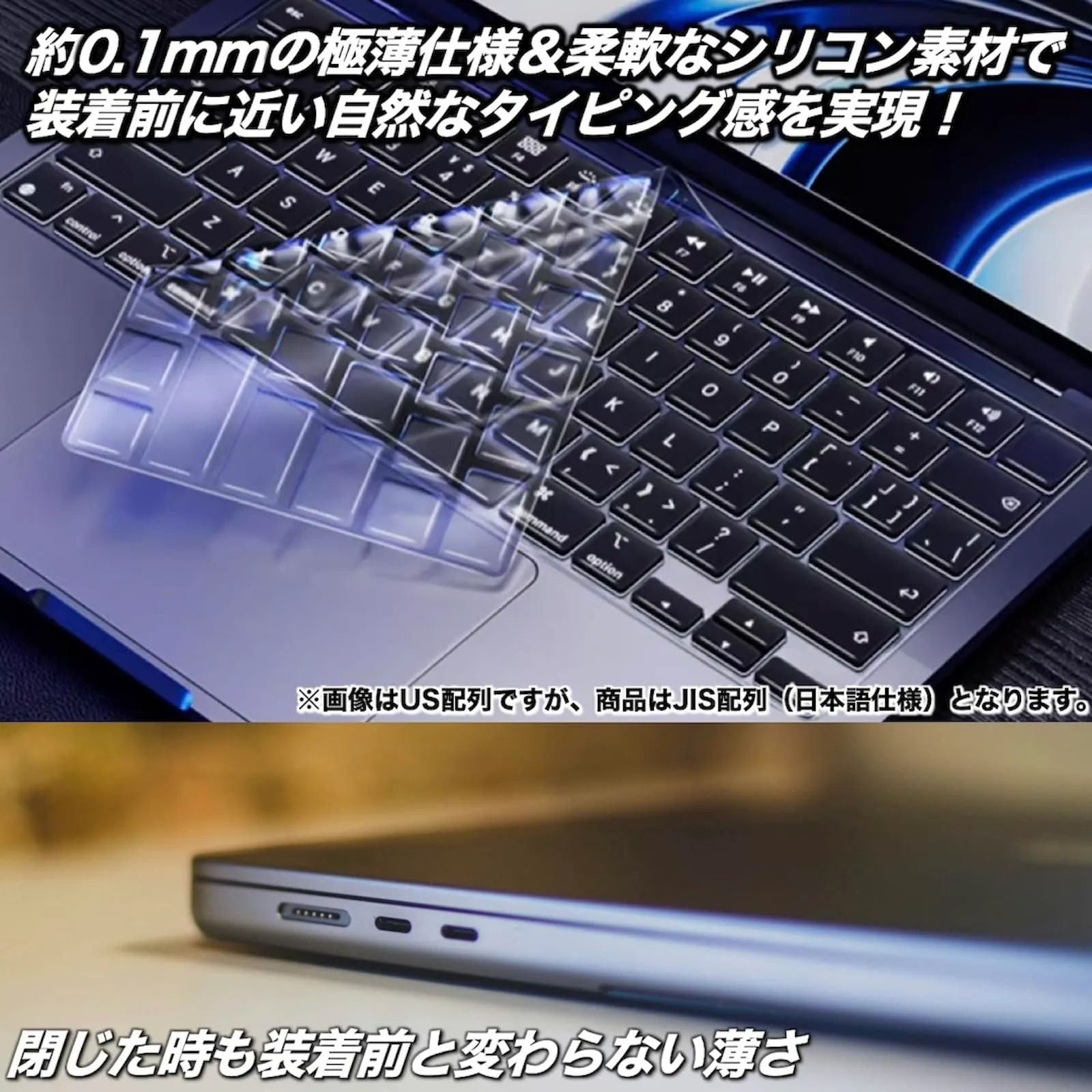 【Macbook Pro/Air M2 M3 対応 キーボードカバー 日本メーカー品】 JIS配列 (2021-2024)型番 耐水 耐塵 A3113/A3114/A2991/A2992/A2779/A2780/A2442/A2485/A2941/A2681 (クリア)