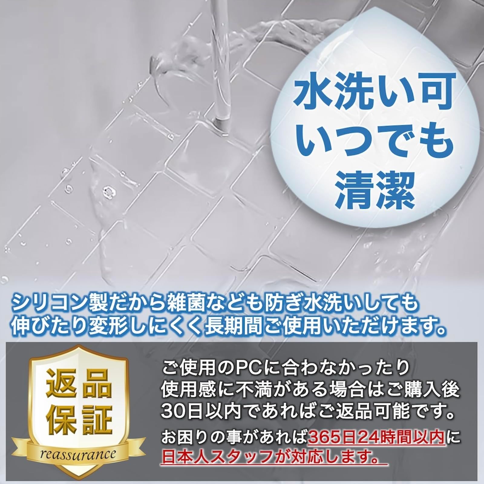 【耐久性と清潔さ】高品質のシリコン素材を採用し、耐摩耗性に優れ、指紋や傷がつきにくいです。全面保護で、ほこりや水分からキーボードを守り、清潔さを維持。汚れても簡単に洗えるので、いつでも新品のような状態をキープできます。