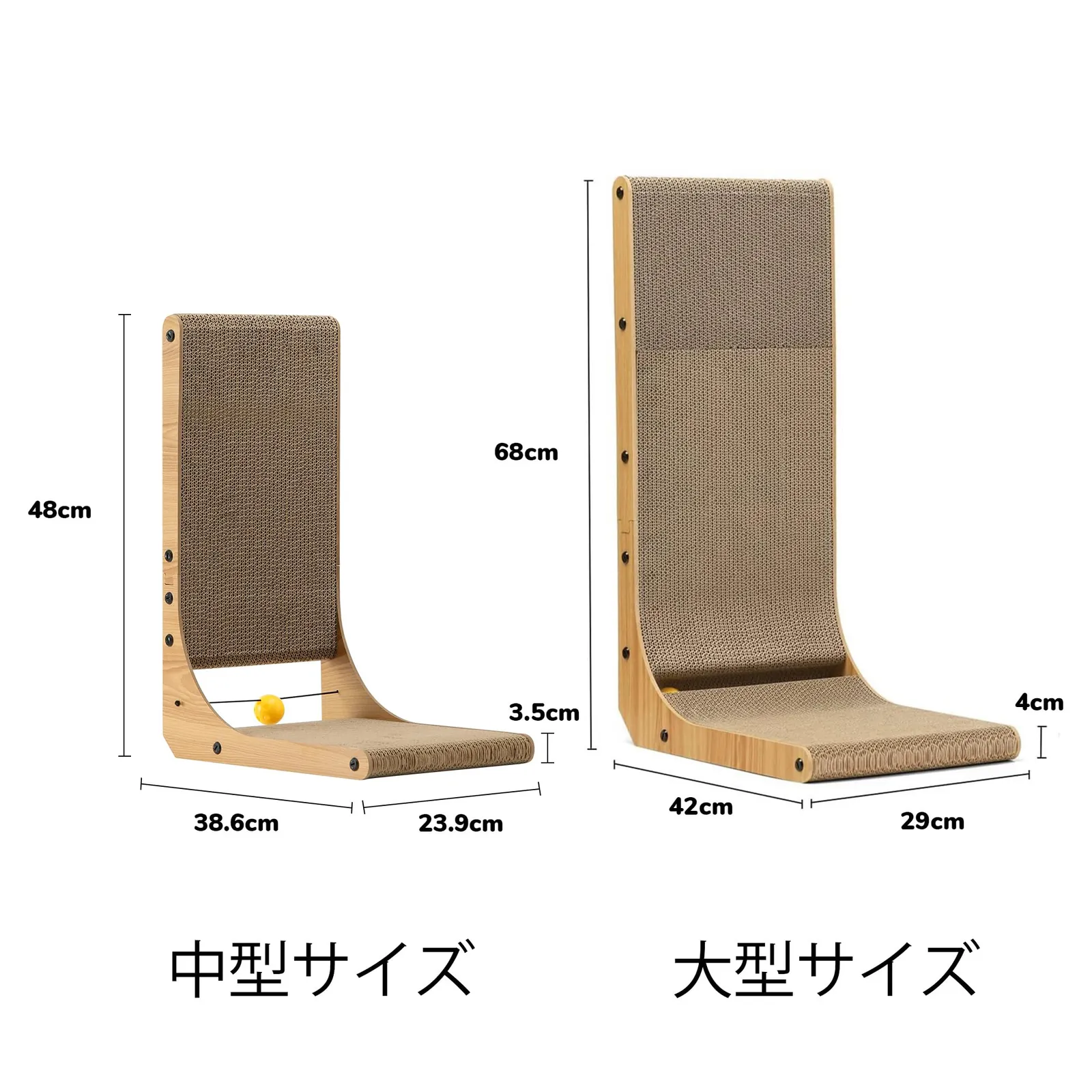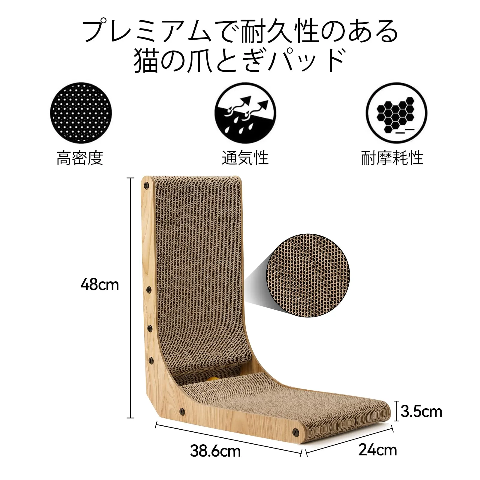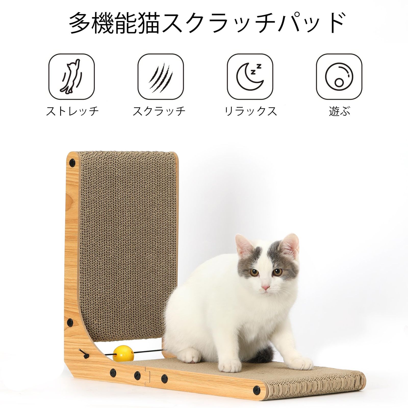 ユニークなデザインーこの爪研ぎはL字型をしています。これによって猫ちゃんが縦や横で爪とぎをすることが出来るだけでなく、猫ちゃんの休憩したり遊んだりする場所にもなります。