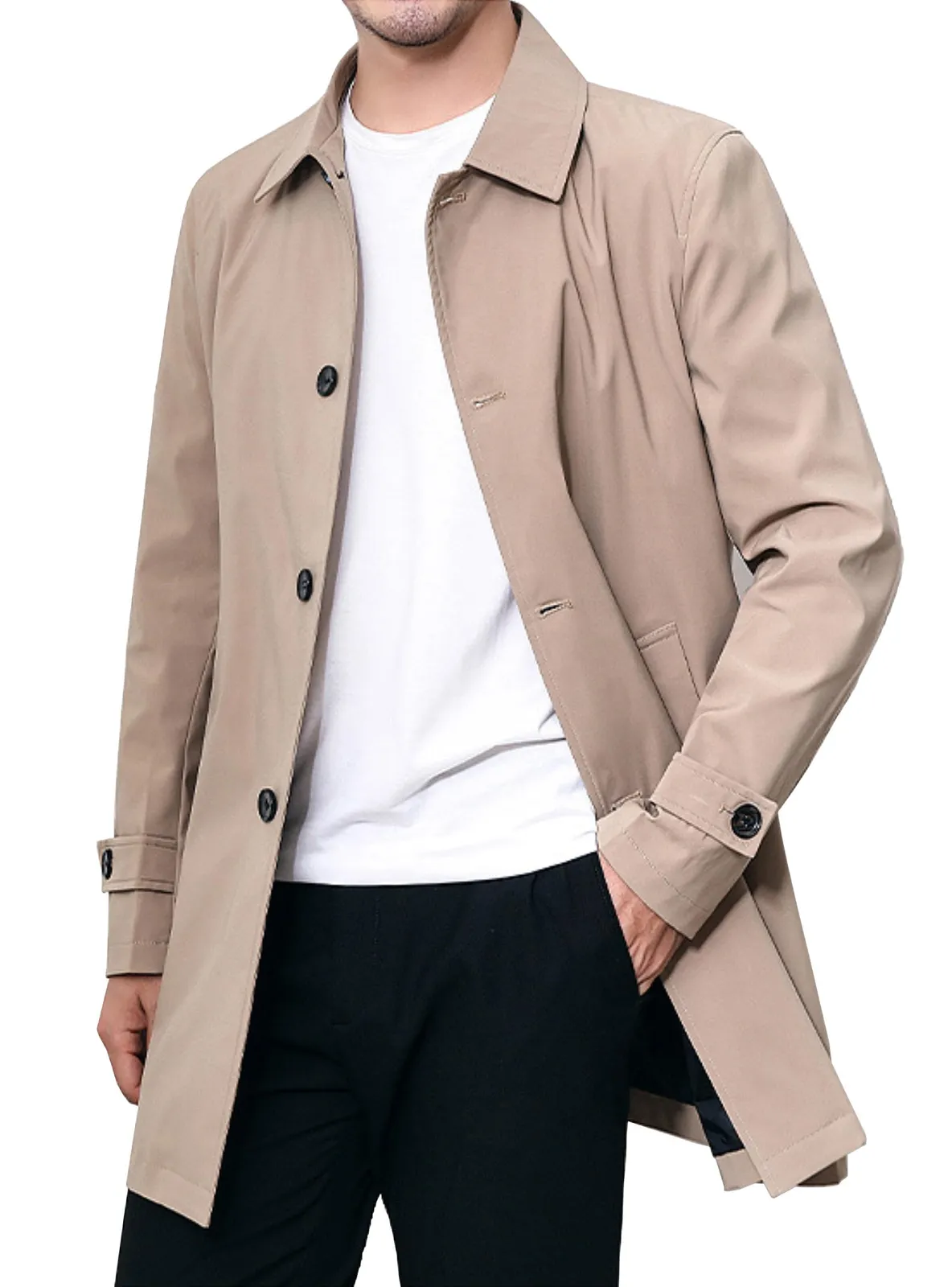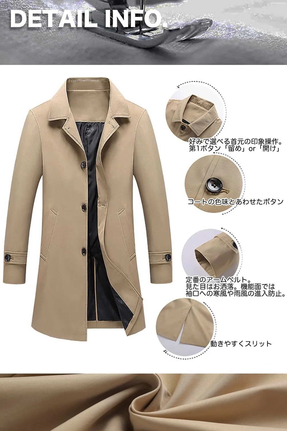 メンズ トレンチコート ビジネス カジュアル アウター フォーマル ミディアム丈 ミドル 美シルエット スリムフォルム コート レインコート ロングジャケット MA04