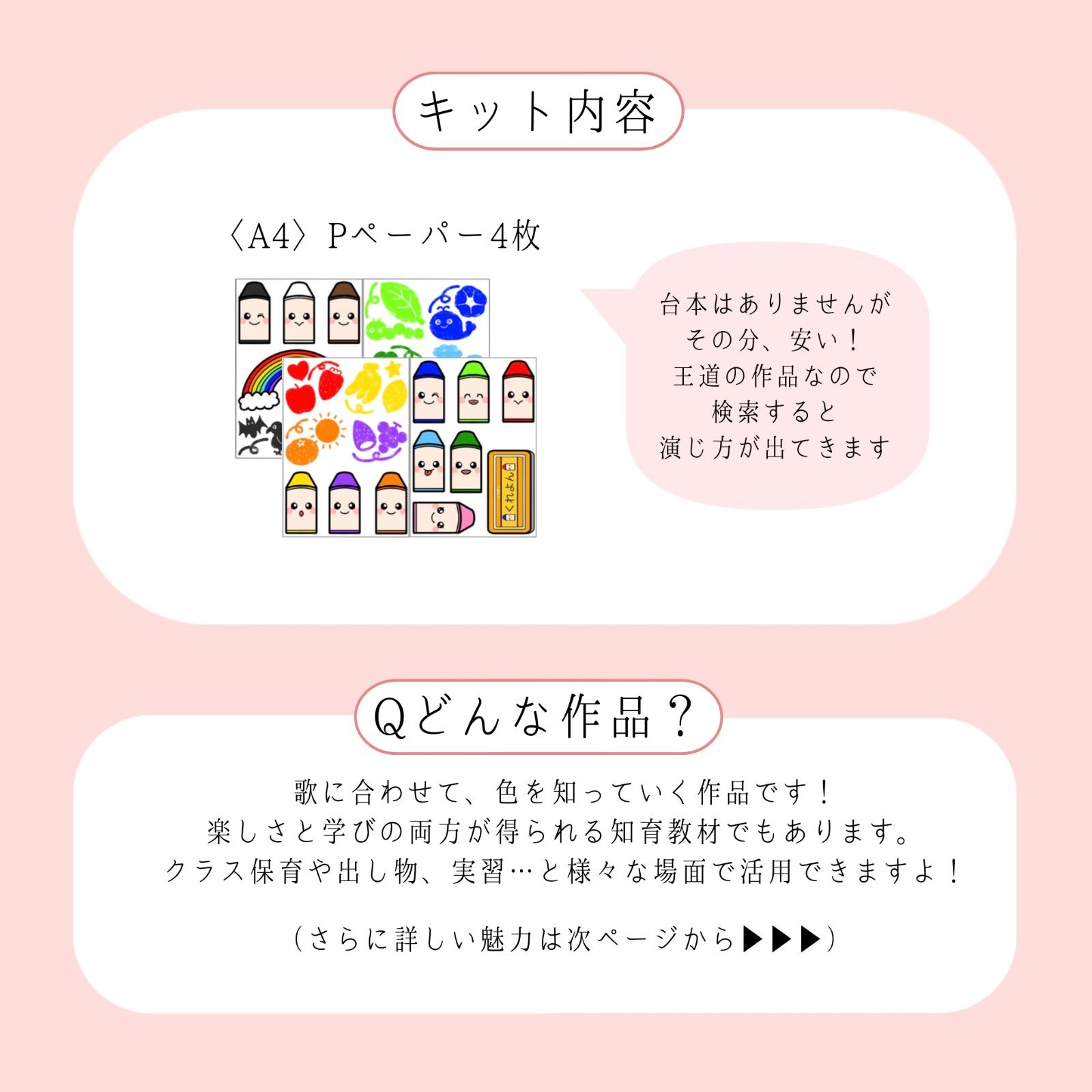 #保育教材 #パネルシアター #ペープサート #スケッチブックシアター #マグネットシアター #部分実習 #手袋シアター #製作 #壁面 #どんな色が好き? #どんないろがすき
