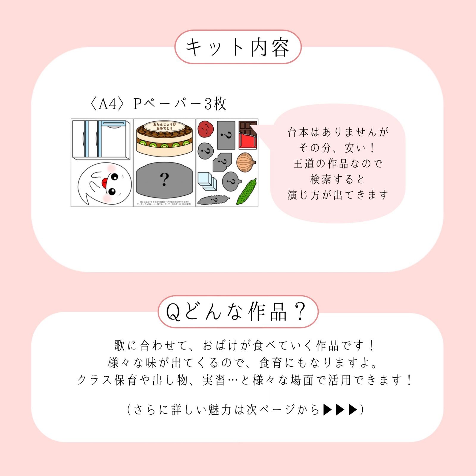 #保育教材 #パネルシアター #ペープサート #スケッチブックシアター #マグネットシアター #部分実習 #手袋シアター #製作 #壁面 #くいしんぼうおばけ #くいしんぼうのおばけ #食いしん坊おばけ #くいしんぼおばけ