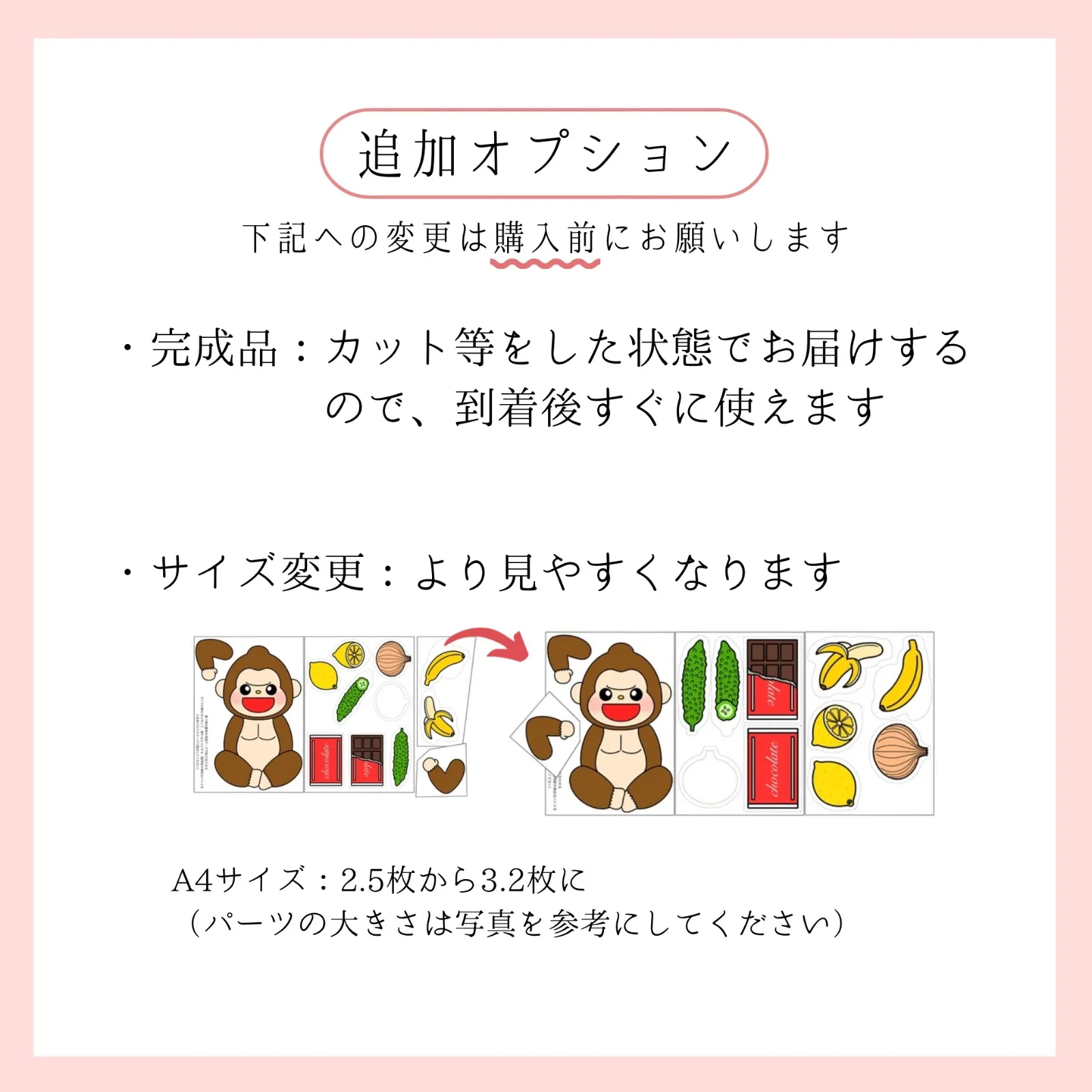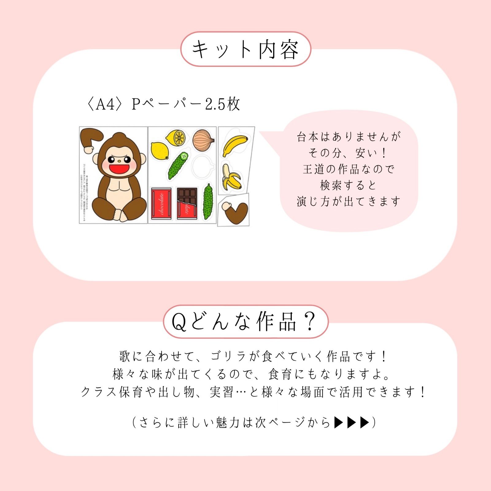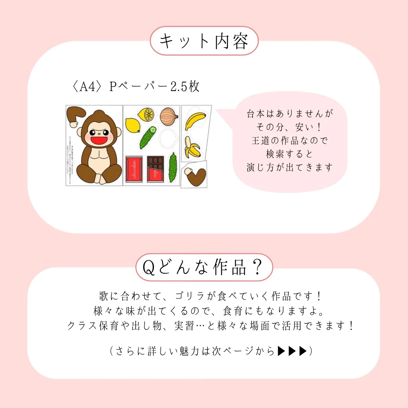 #保育教材 #パネルシアター #ペープサート #スケッチブックシアター #マグネットシアター #部分実習 #手袋シアター #製作 #壁面 #くいしんぼうごりら #くいしんぼうゴリラ #食いしん坊ゴリラ