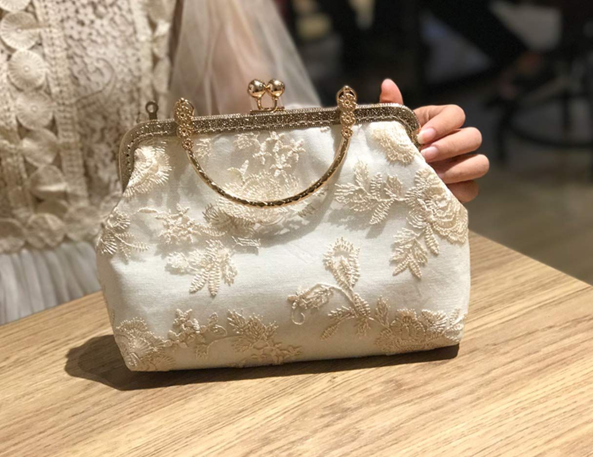 【材質】高級レース付きのデザイン、上品で多様な場面で使えるクラッチバック。パーティーシーンなどの場面で大活躍!