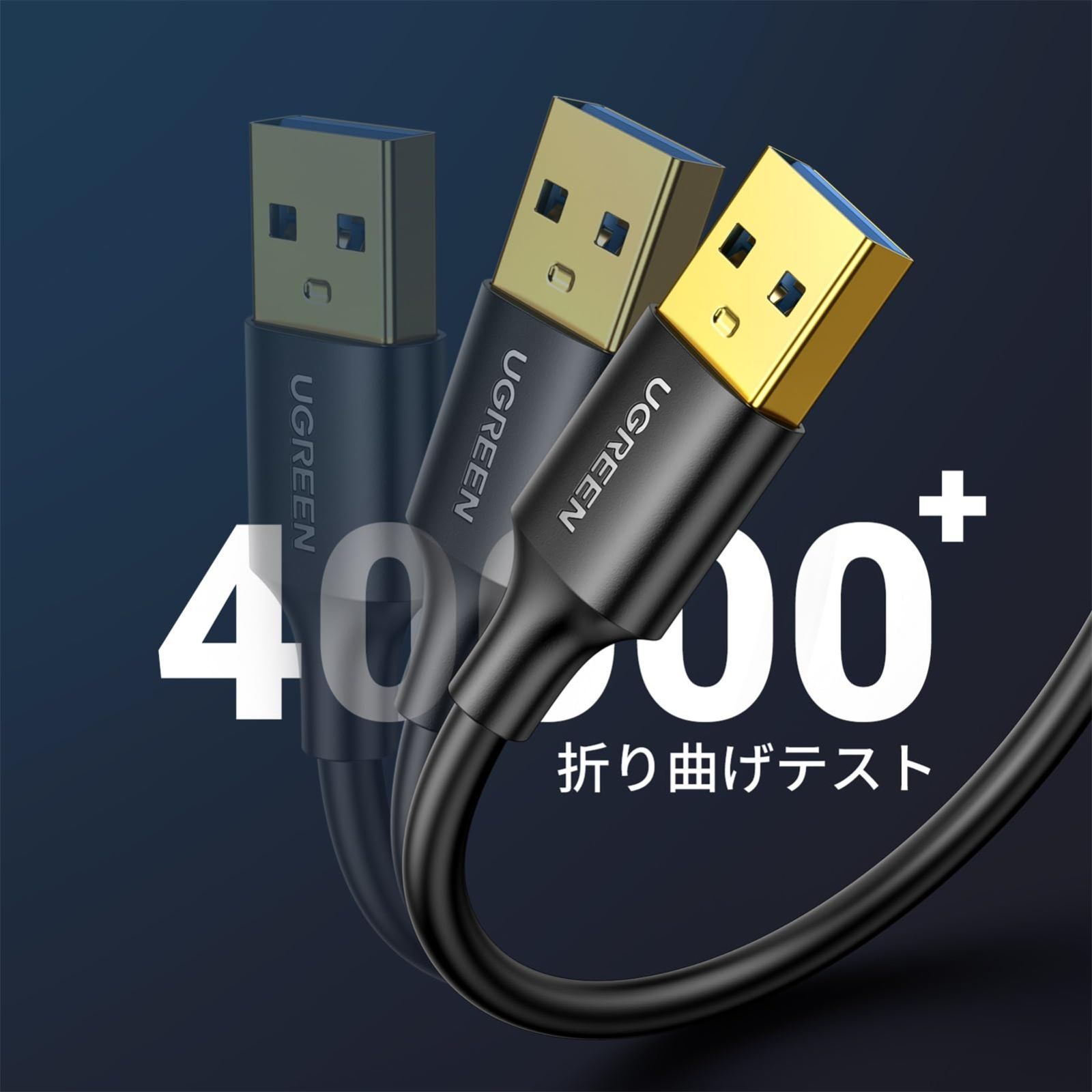 UGREEN USB 3.0 ケーブル タイプA-タイプA オス-オス 金メッキコネクタ搭載 高耐久性 USBケーブル 両端 オス 2M