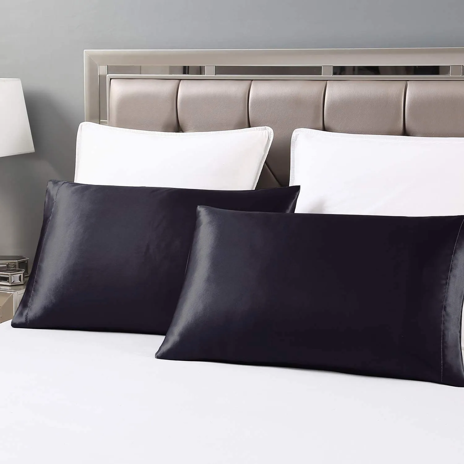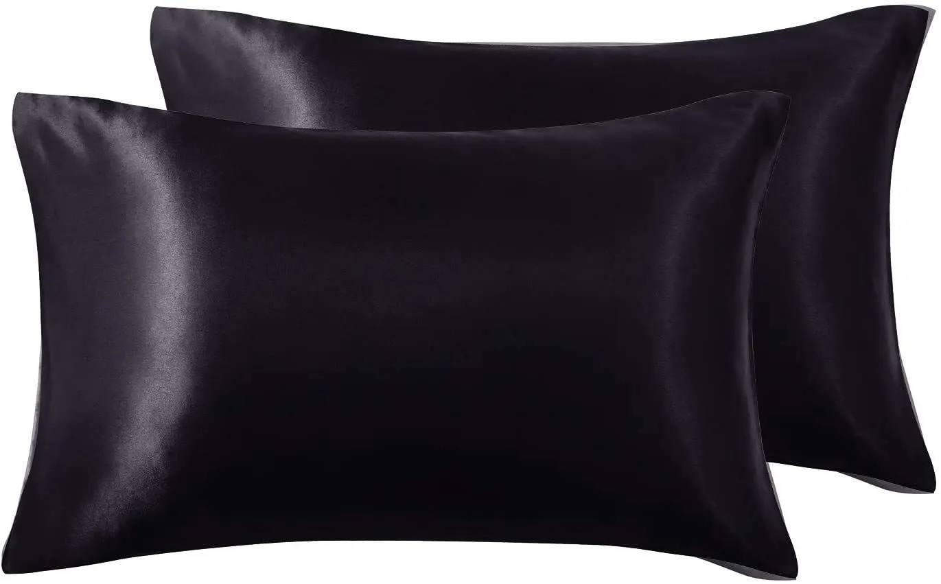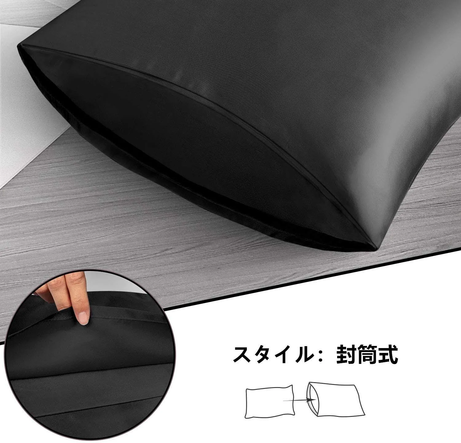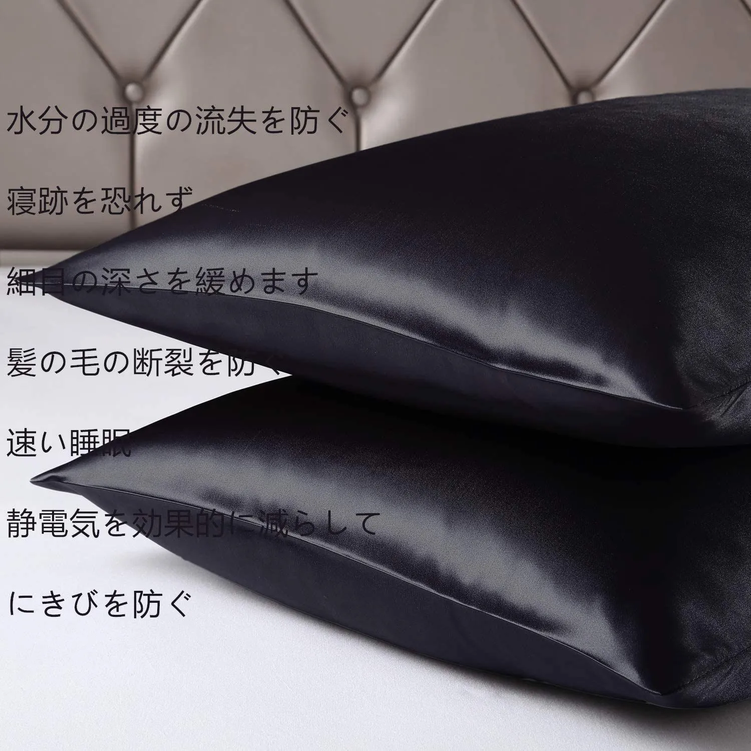 枕カバー 2枚セット サテンの枕カバー 封筒式ピローケース 美肌 美髪 両面シルクタイプ 滑らかな材質 静電気防止 (43*63 黒)