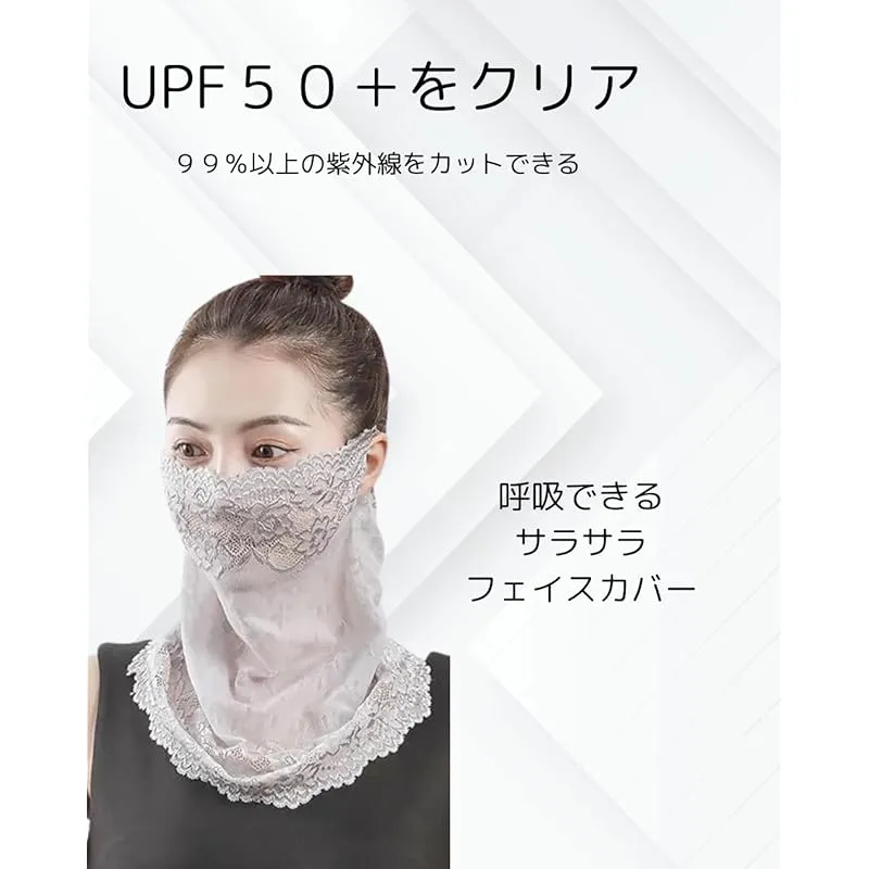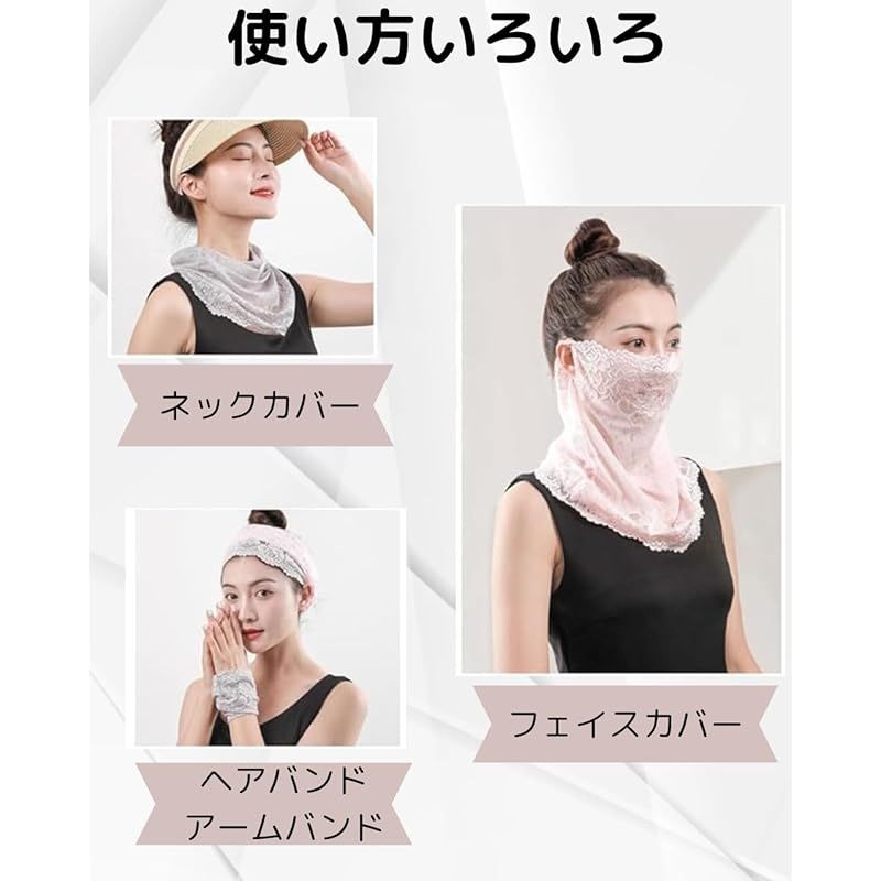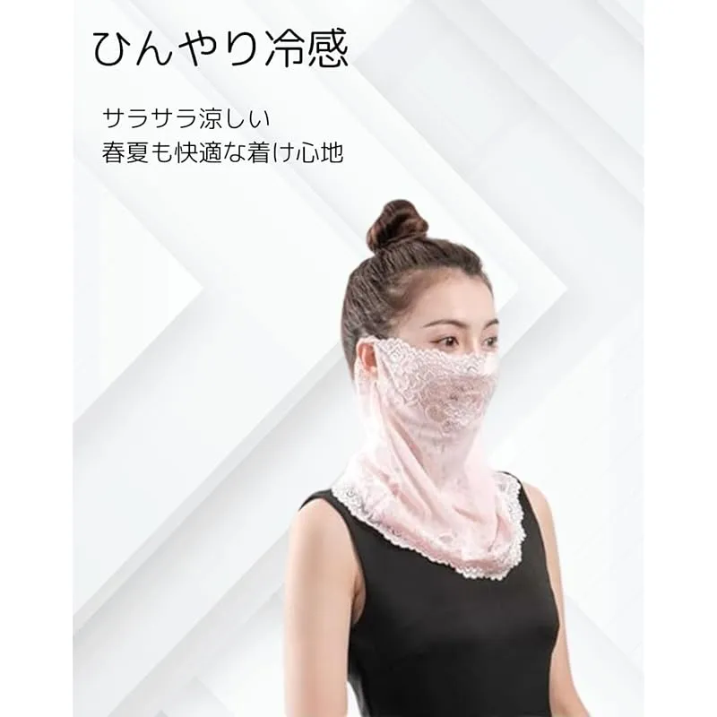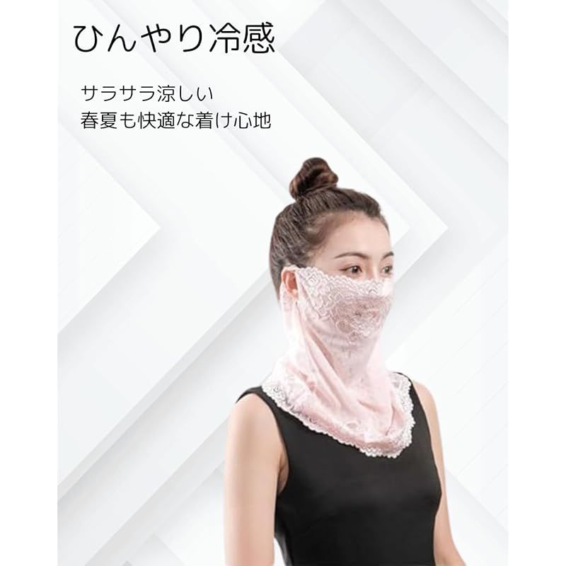 【新品】 [Liebendo] フェイスカバー レディース 息苦しくない 4Way ネックカバー ネックガード フェイスガード 耳掛け 首周りガード 速乾 可愛い メッシュ レース フェイスマスク UVカット 日焼け 紫外線対策 (ピンク)