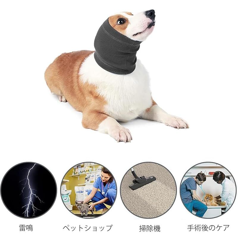 【不安解消】犬用イヤーマフをペットの頭に巻きつけることで、耳を保護し、ノイズを効果的に軽減。特に雷や花火の音に敏感な犬を落ち着かせるのに役立ちます。