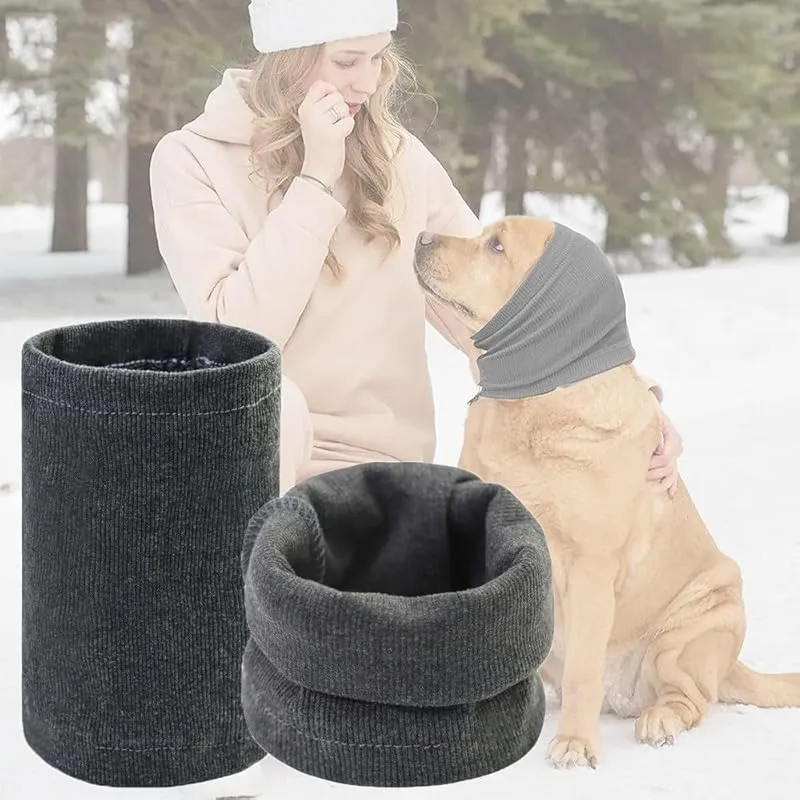 【新品】 CHENLONB 犬 スヌード バンダナ冬季に対応 猫用 犬用 首輪 暖かい 柔らかい スカーフ かわいい おしゃれ ペットスヌード 騒音防止 犬耳カバー入浴乾燥不安解 (S)