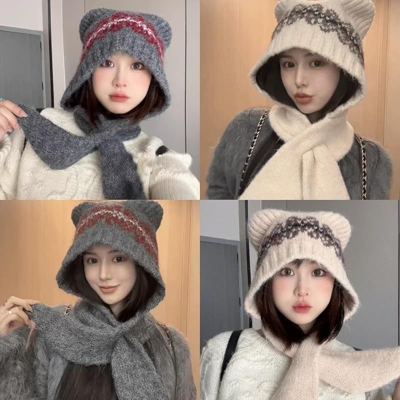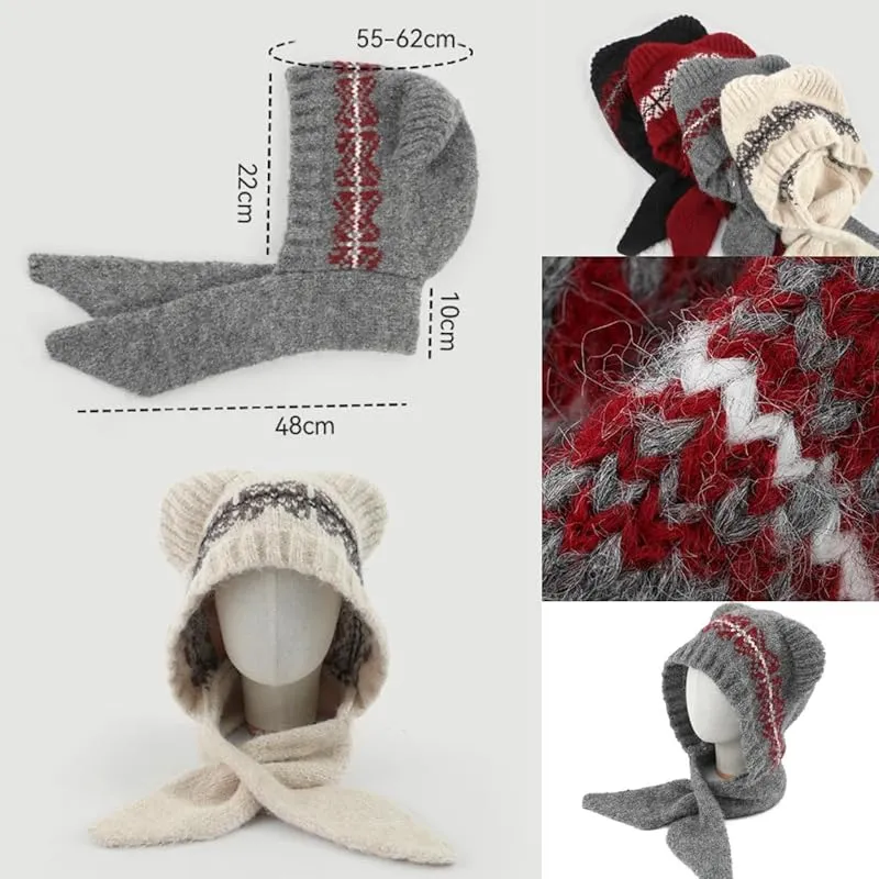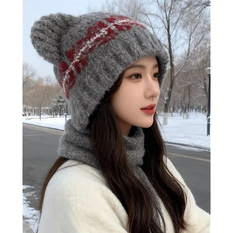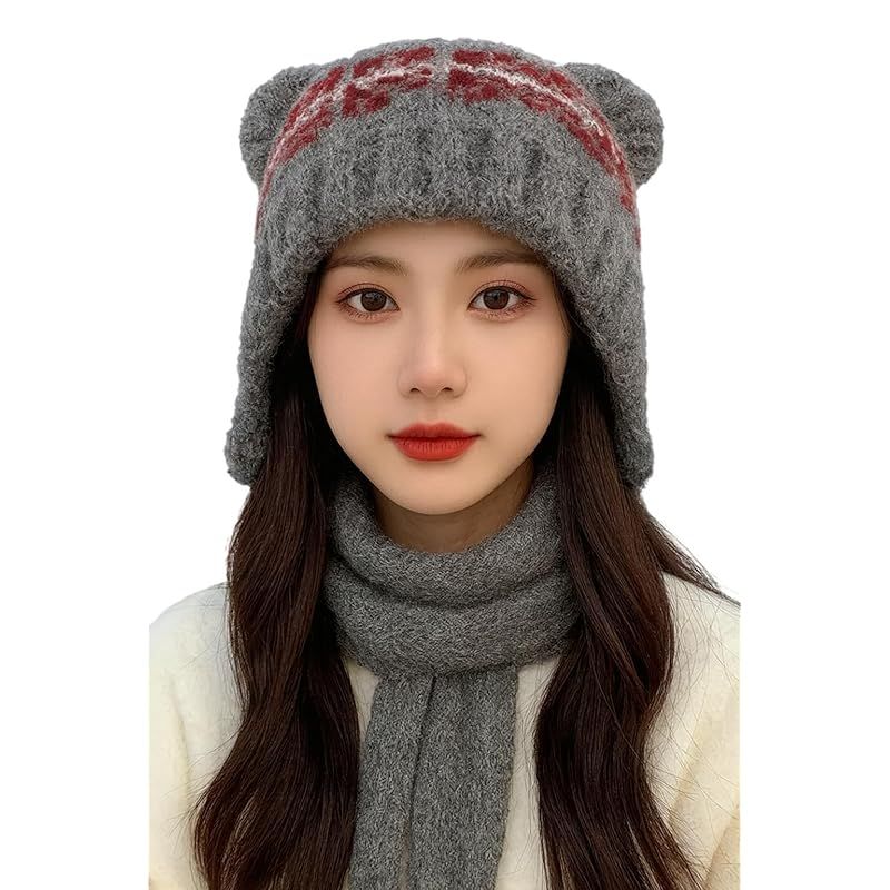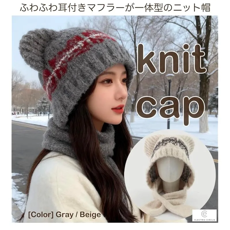 【新品】 ニット帽子 ふわふわ 耳付き ネックウォーマー ゆったり ふわふわ レディース 帽子 ニットキャップ 小顔効果 ニット帽 スキー スノボ (グレー) かっこいい かわいい おしゃれ 人気 プレゼント スポーツ 大人 ハット 帽 春 夏 秋 冬 用 ク