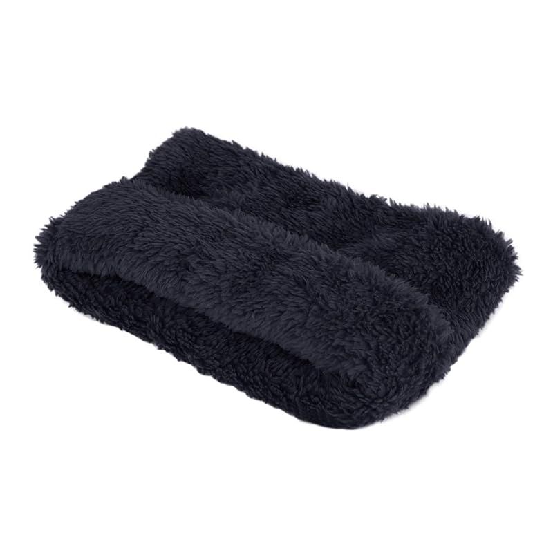 無地でシンプルなデザインで、ふわふわとしたボア素材で作られたキッズ用ネックウオーマーです。