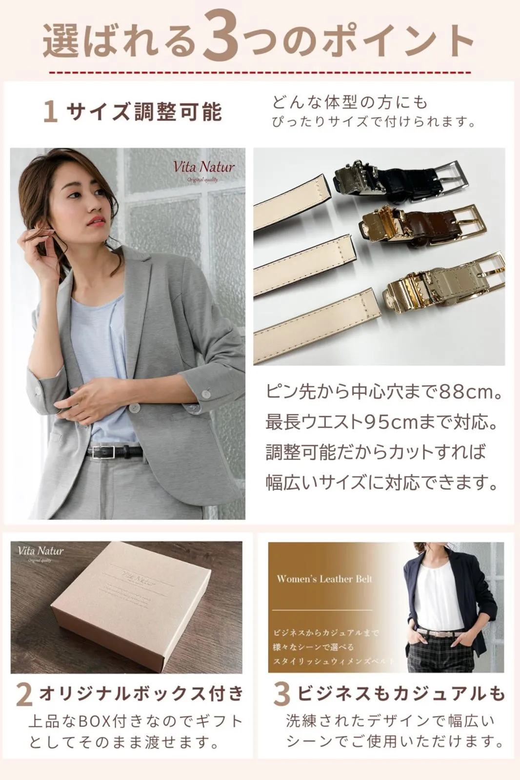 【高い品質・リーズナブル】商品企画・工場への直接発注・輸入を全て自社で行っている、中間マージンゼロだからこそ実現できた、高品質かつお手頃価格のレディース用ベルトです。